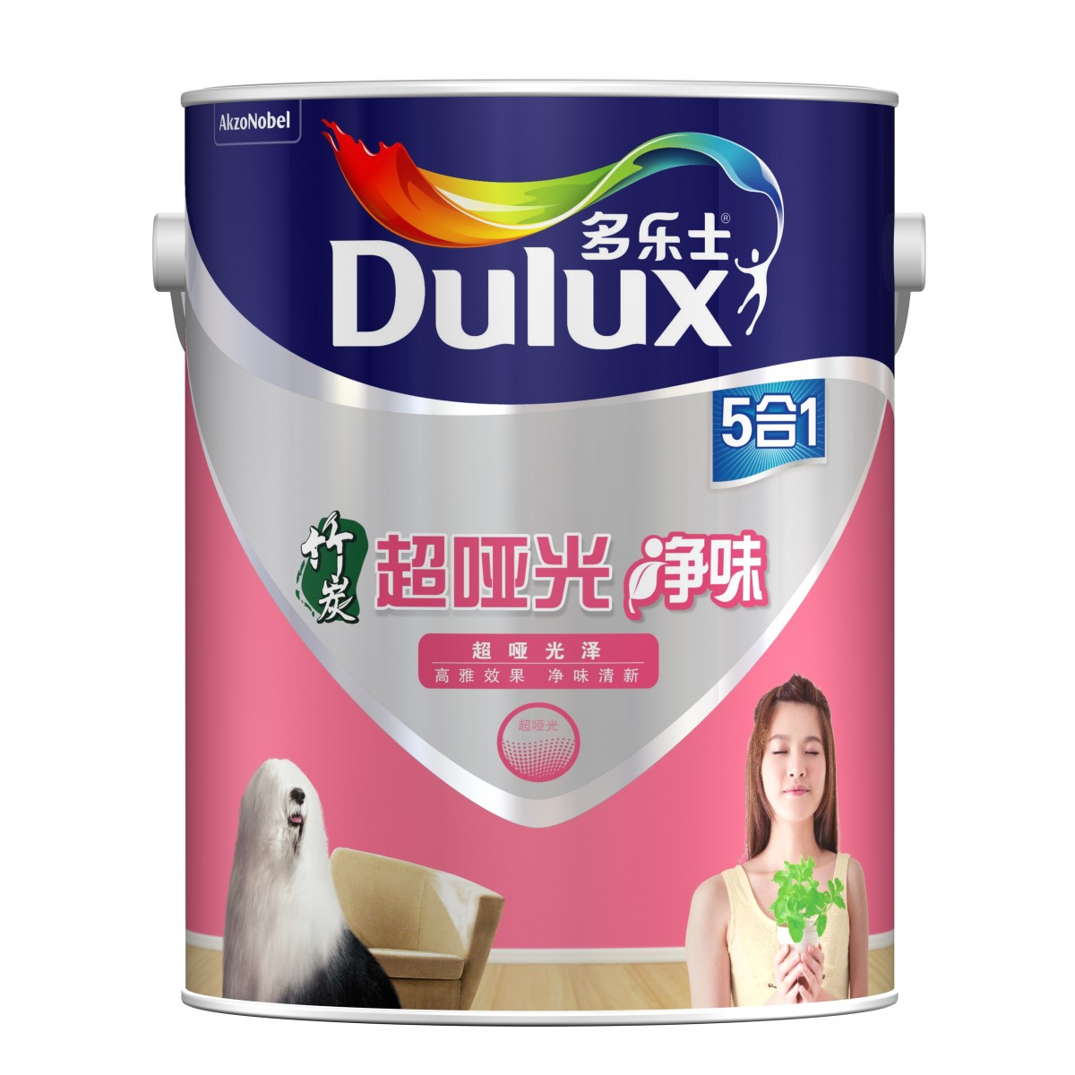 多乐士竹炭超哑光净味5合1墙面漆 多乐士五合一乳胶漆 多乐士涂料。经典5大功能,竹炭净味配方,全面解决墙面问题。哑光效果墙面更出色,持久靓丽,更环保。多乐士内墙哑光五合一5L,18L涂料。