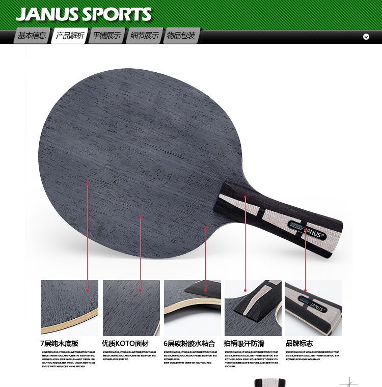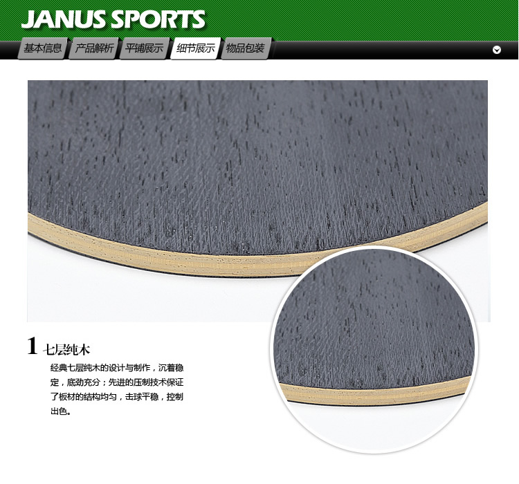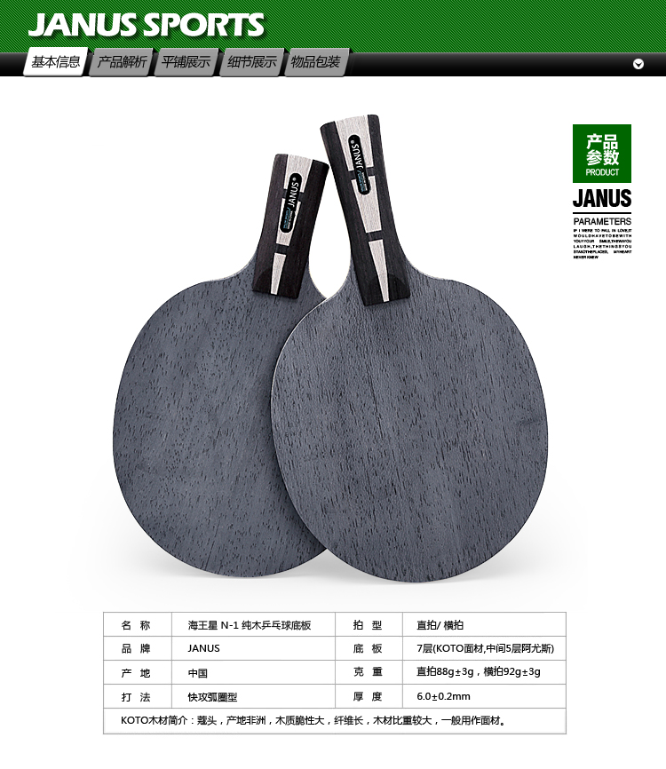 商品名称:JANUS 专业7层纯木 海王星N1 乒乓球底板乒乓球拍乒乓拍 JA-N1