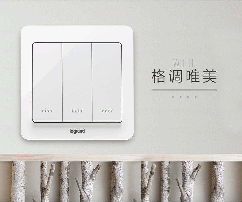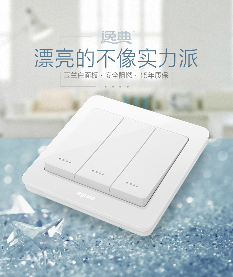 罗格朗 逸典圆三开单控三联3开三位家用墙壁电灯开关面板86型