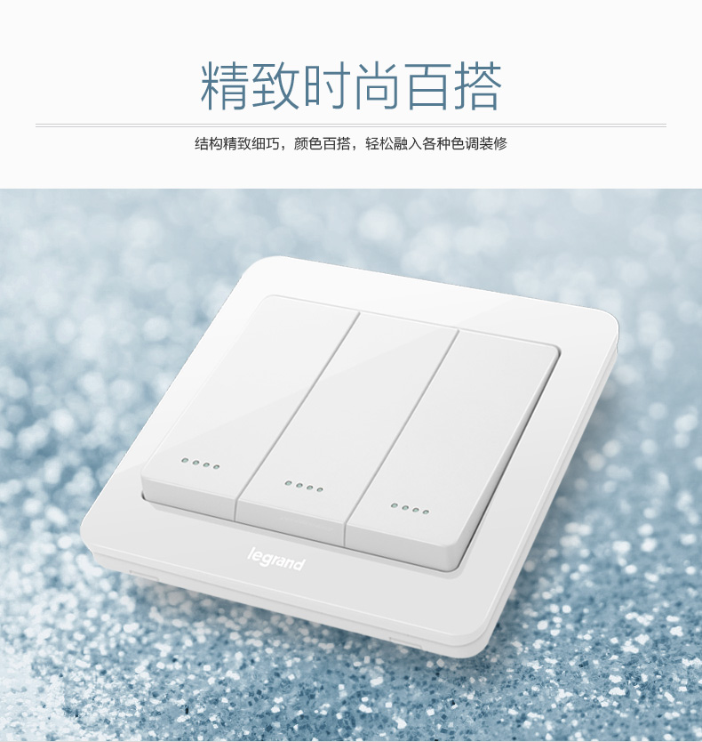 商品名称:罗格朗 逸典圆三开单控三联3开三位家用墙壁电灯开关面板86型