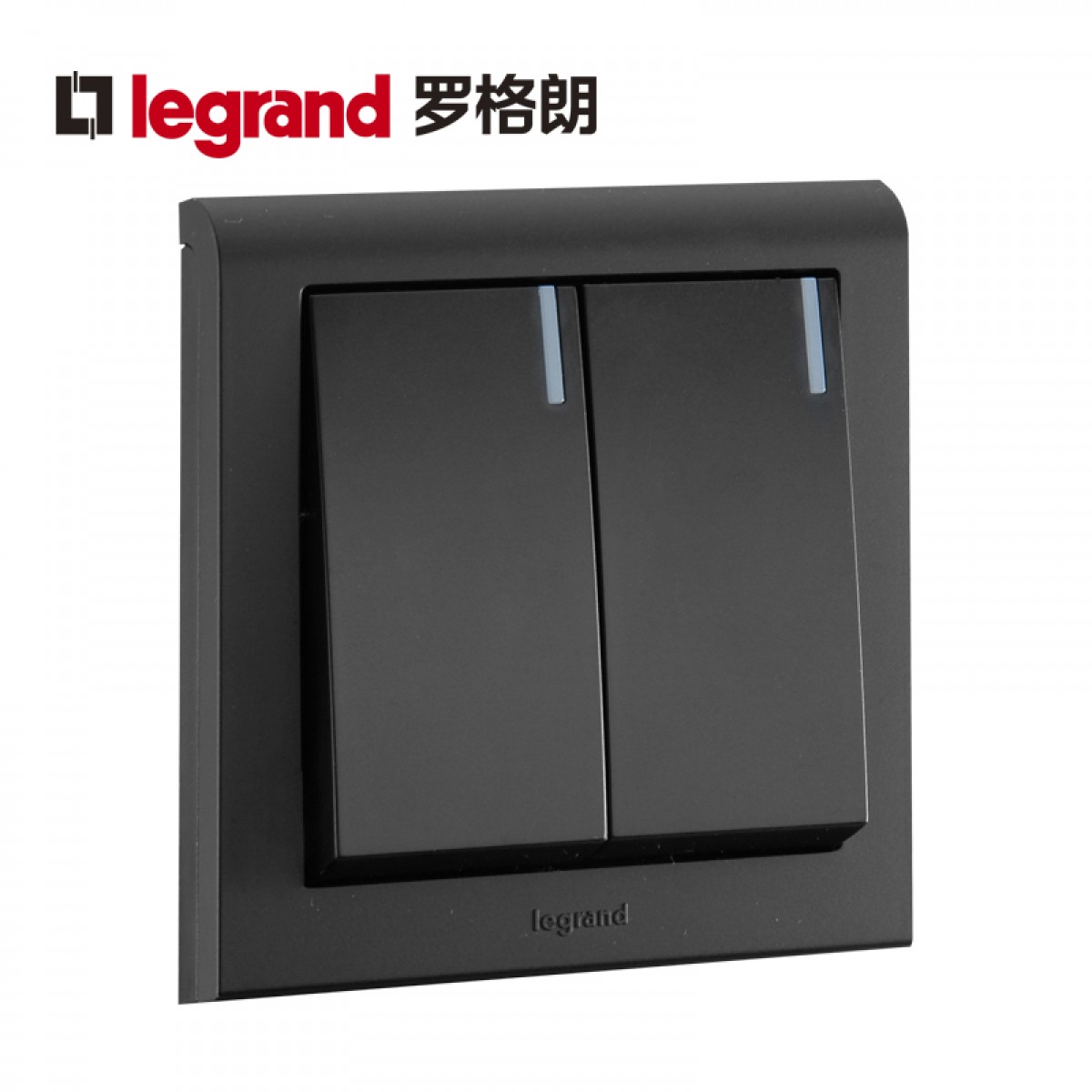 罗格朗 黑色二开单控双开面板双联单控家用二位电灯开关2开86型