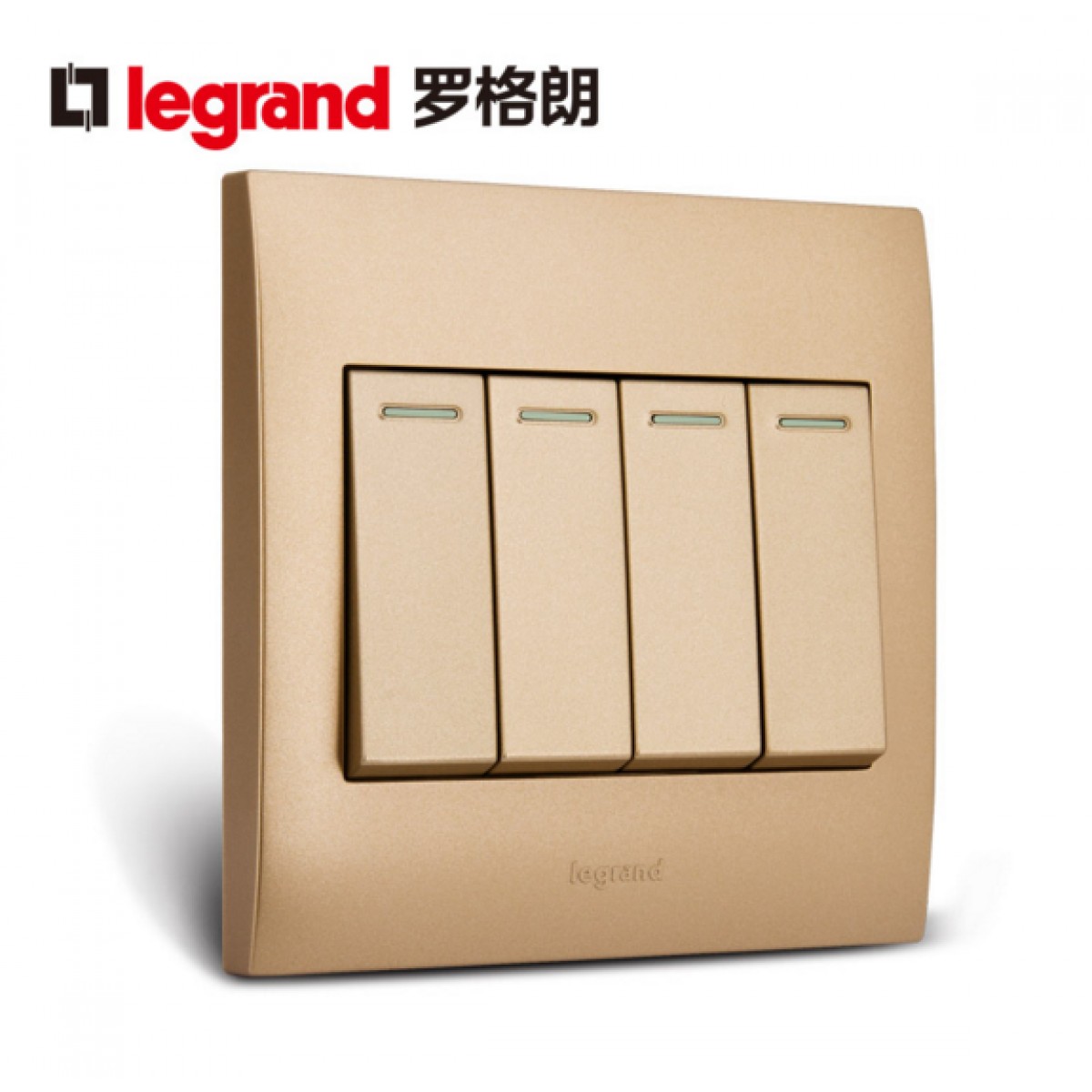 罗格朗 三位单控带荧光开关面板86型三开单控荧光3开墙壁开关