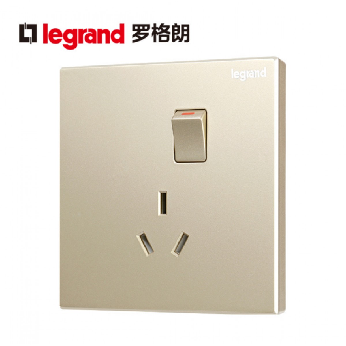 商品名称:罗格朗 开关插座面板仕典米兰金10A三孔带开关墙壁电源86型