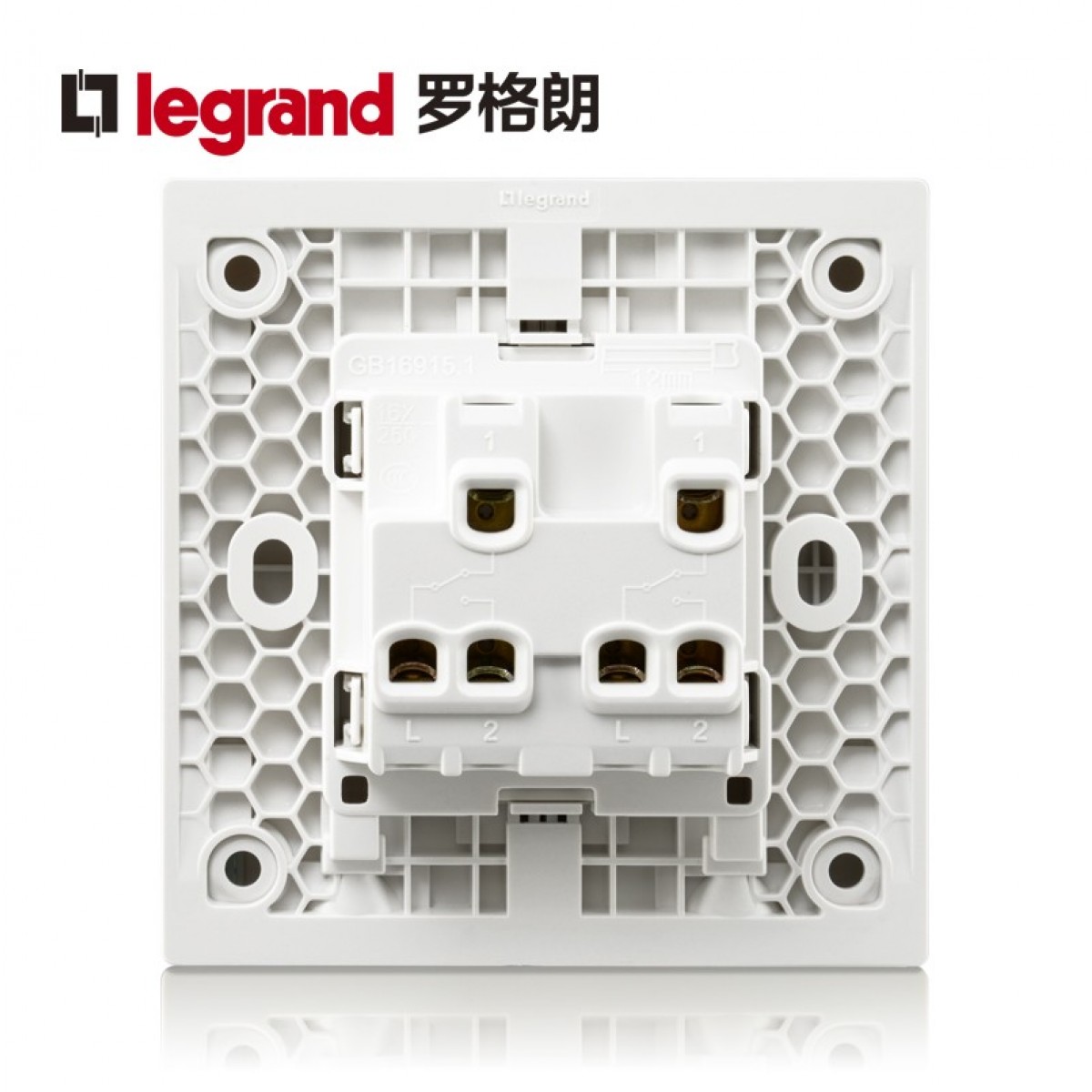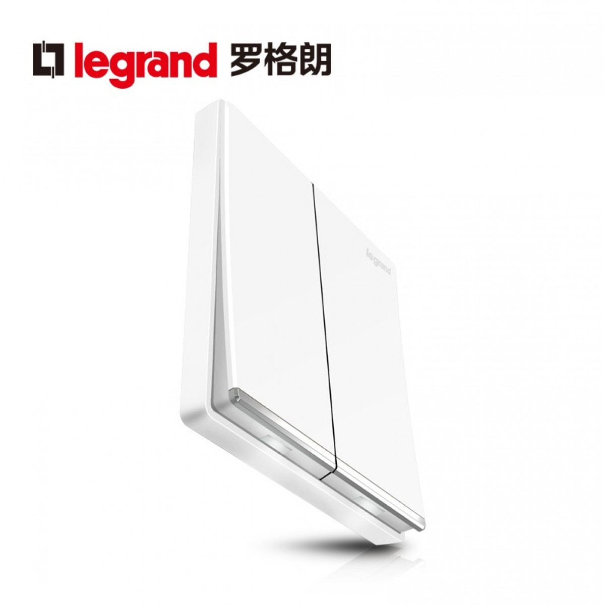 罗格朗 家用大面板双联双控2开二位双开双控开关面板楼梯86型