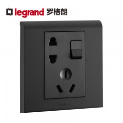 罗格朗 黑色墙壁86型二三插一开五孔带开关插座面板家用多孔插座