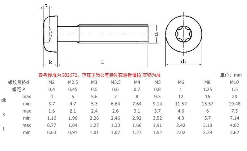 商品名称:国产 304不锈钢圆头/盘头内梅花螺丝钉 防盗螺钉 GB2672 M2M2.5M3M4M5mm