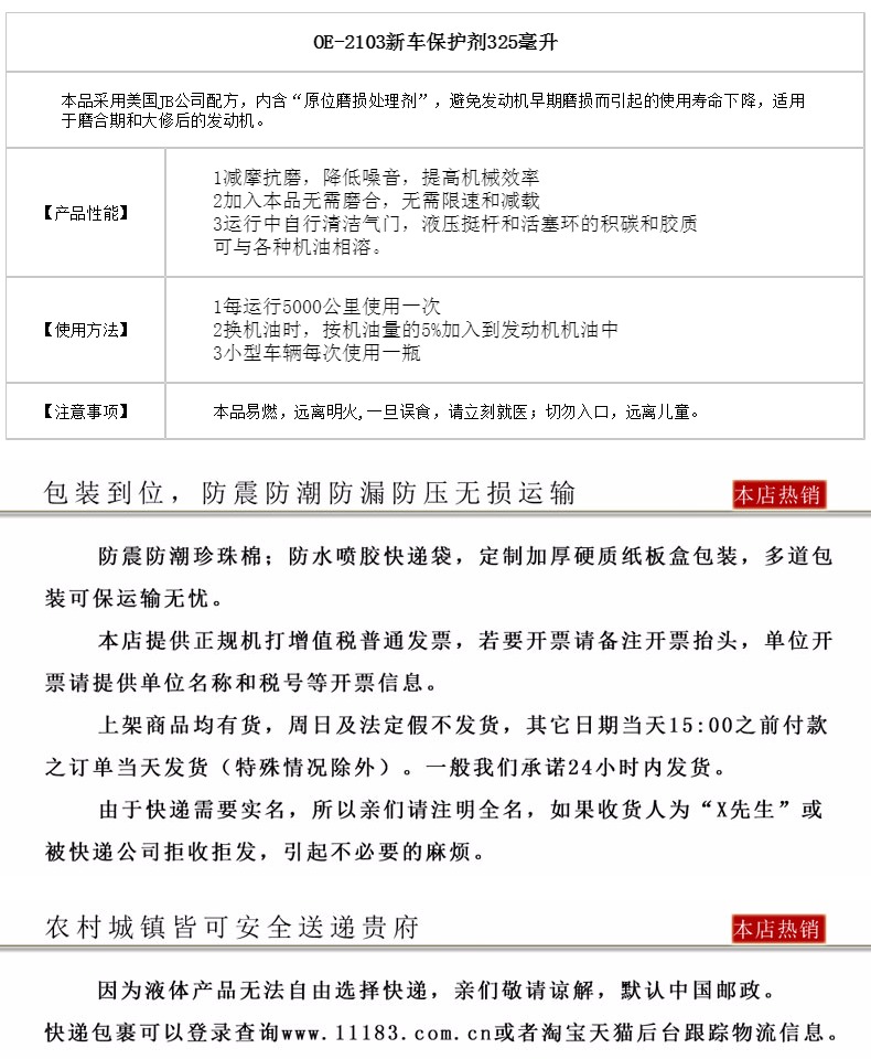 商品名称:JB 机油添加剂新车磨合宝抗磨剂发动机保护剂养护剂机油精