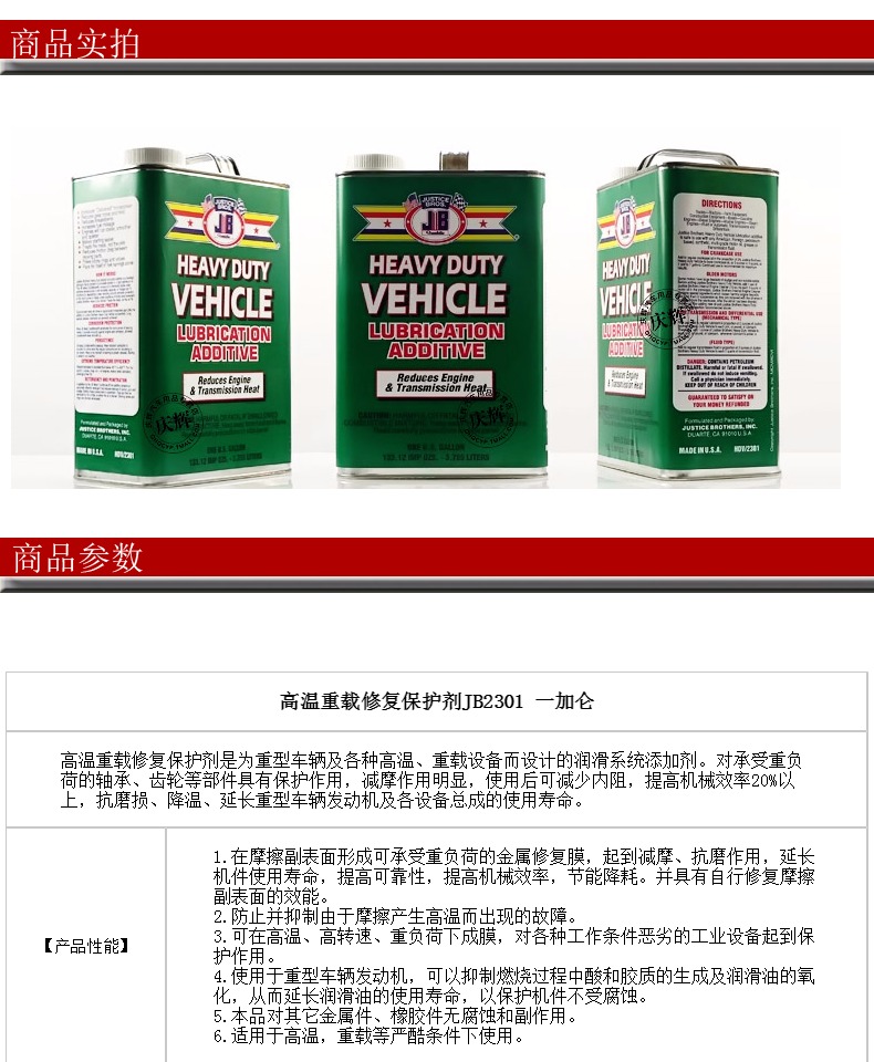 商品名称:JB 挖掘机机械抗磨高温重载修复剂机油添加剂JB新世纪保护神2301车圣