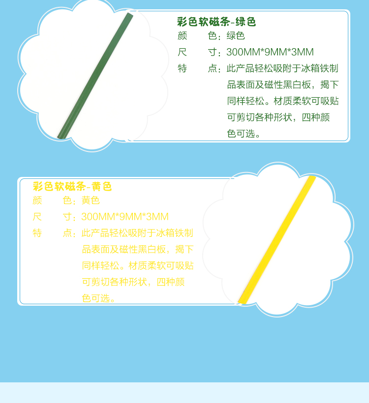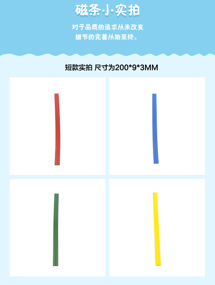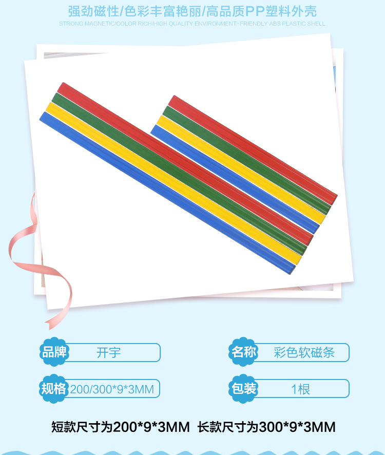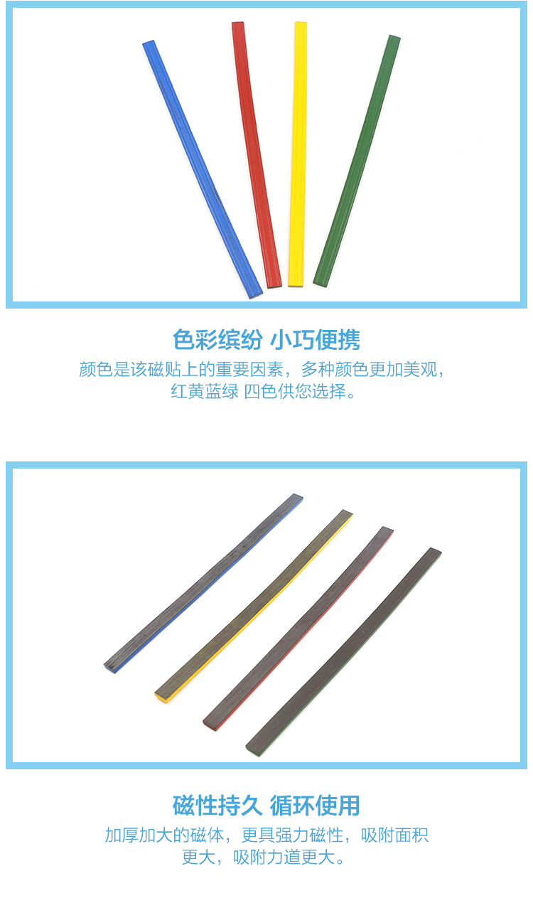 商品名称:开宇 教学教具橡胶磁铁条形吸铁石磁性贴磁片薄磁石彩色磁条磁力强
