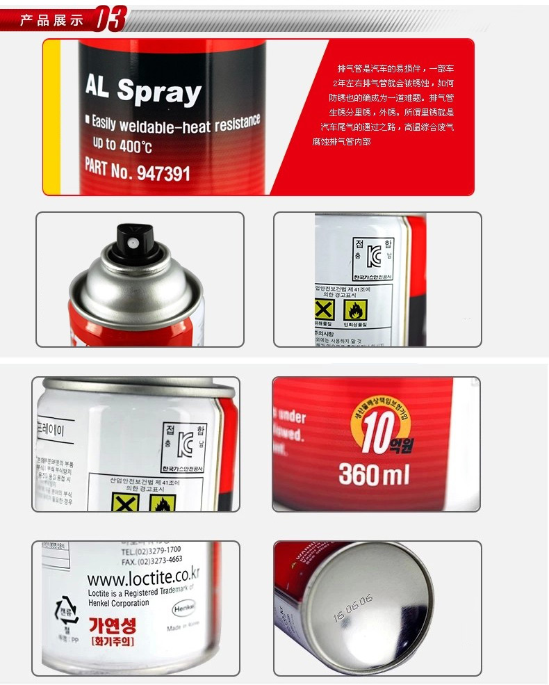 商品名称:汉高 铝喷剂排气管摩托车防锈剂 排气管养护铝制底盘装甲底盘养护