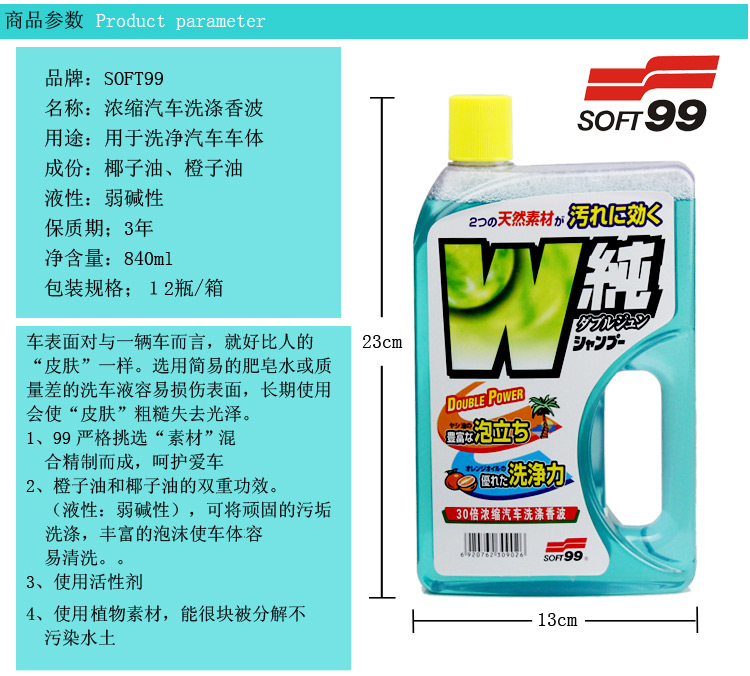 商品名称:SOFT99 汽车洗涤香波 洗车液 浓缩洗车精
