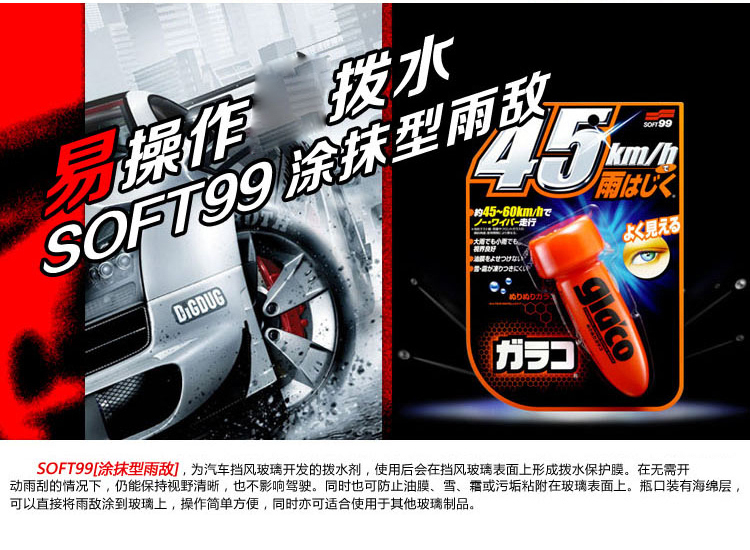 商品名称:SOFT99 子弹头雨敌 车用玻璃驱水剂 防雨剂 防水镀膜剂