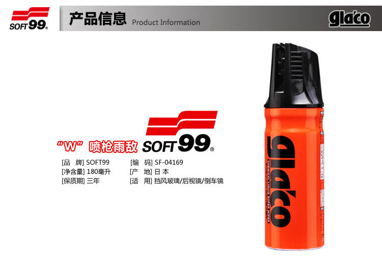 商品名称:SOFT99 雨敌双喷枪头汽车挡风玻璃水 防雨防水油膜驱水镀膜剂
