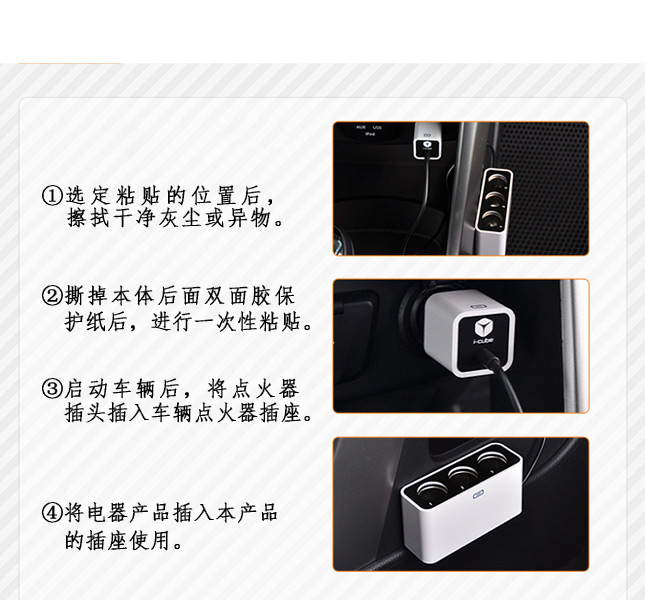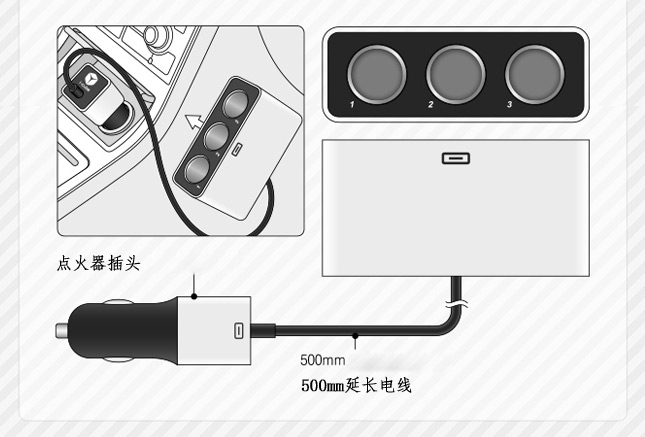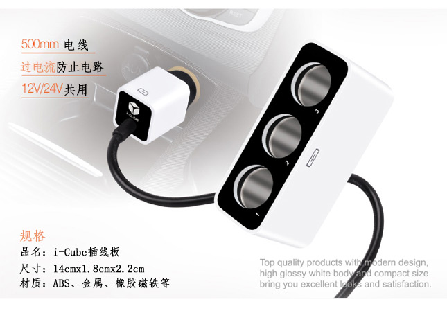 商品名称:FOURING 一分三点烟器 一拖三车载点烟器 DA-822