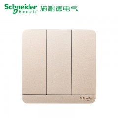 施耐德 三位三开三联单控 电源开关面板16A 绎尚金