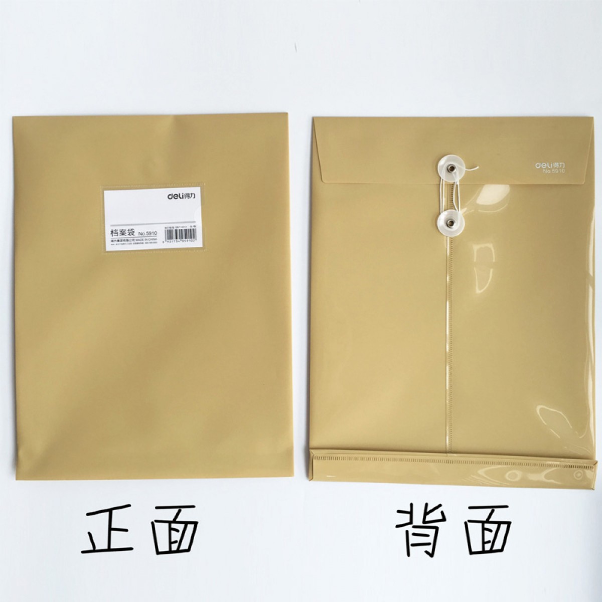 得力 档案袋5910防水PP材质宽底带标签文件防潮耐用a4文件袋牛皮纸色档案袋 塑料PP文件袋