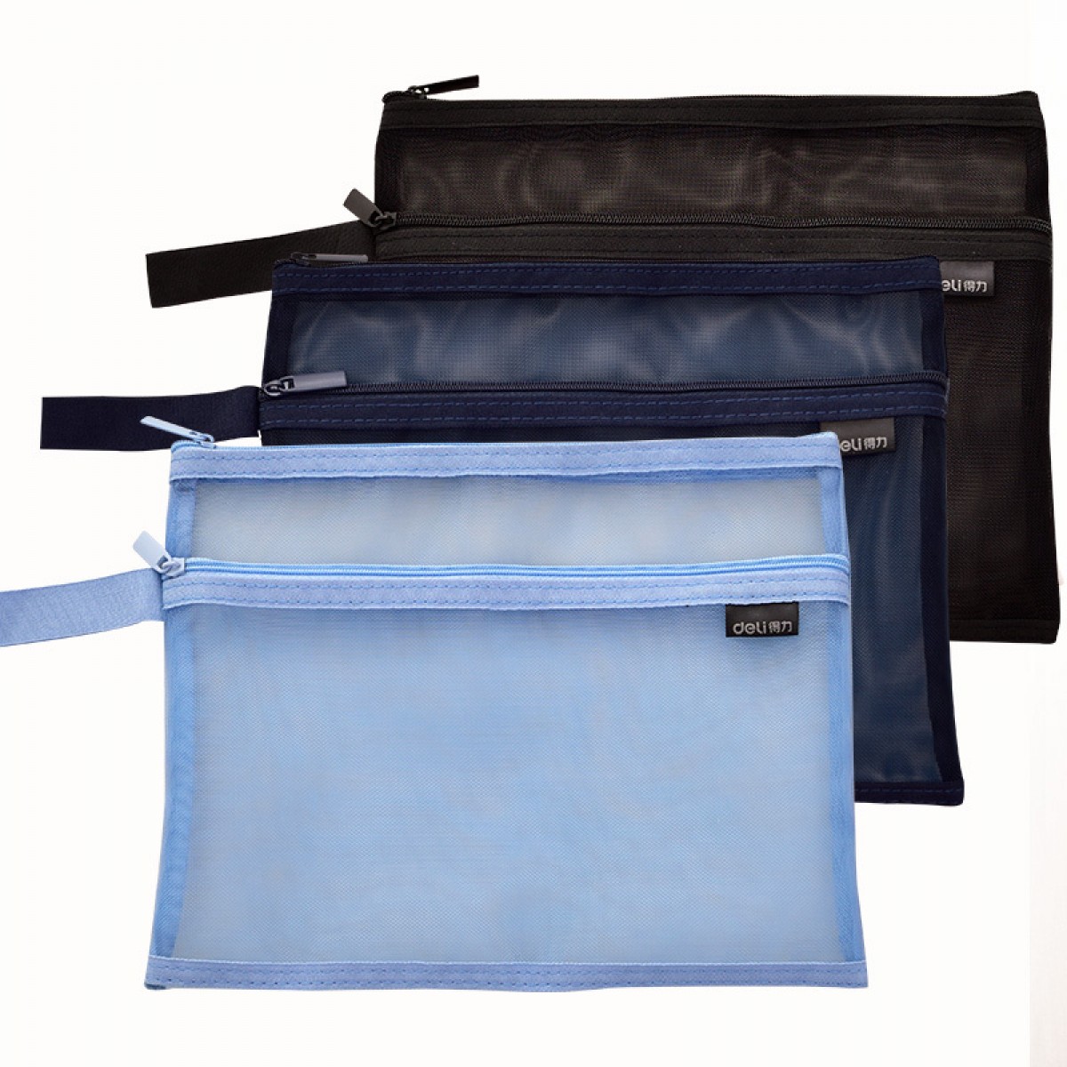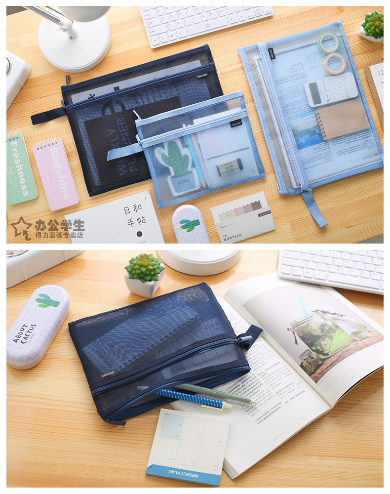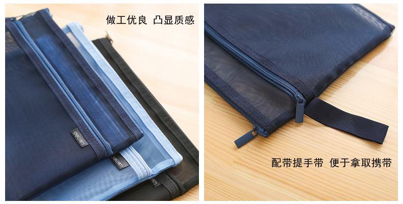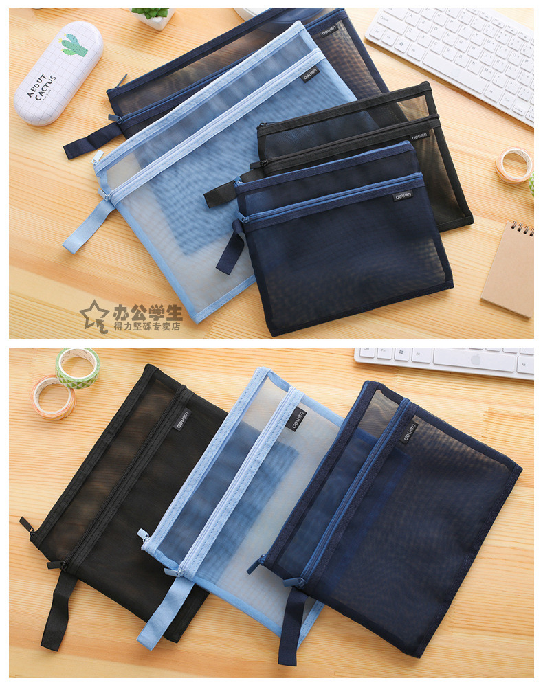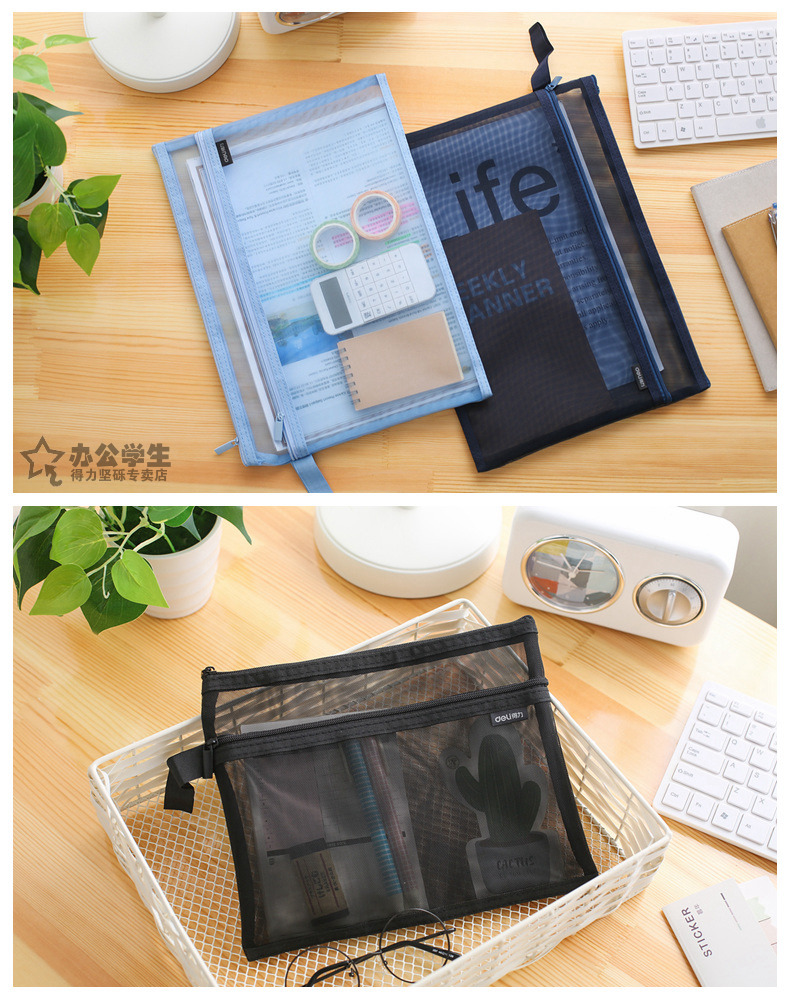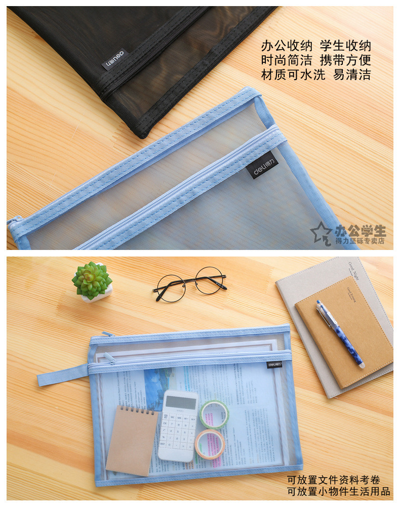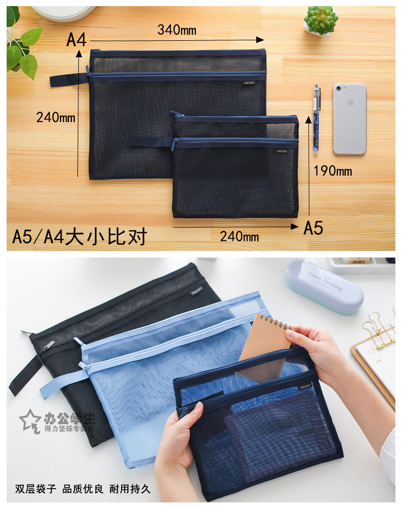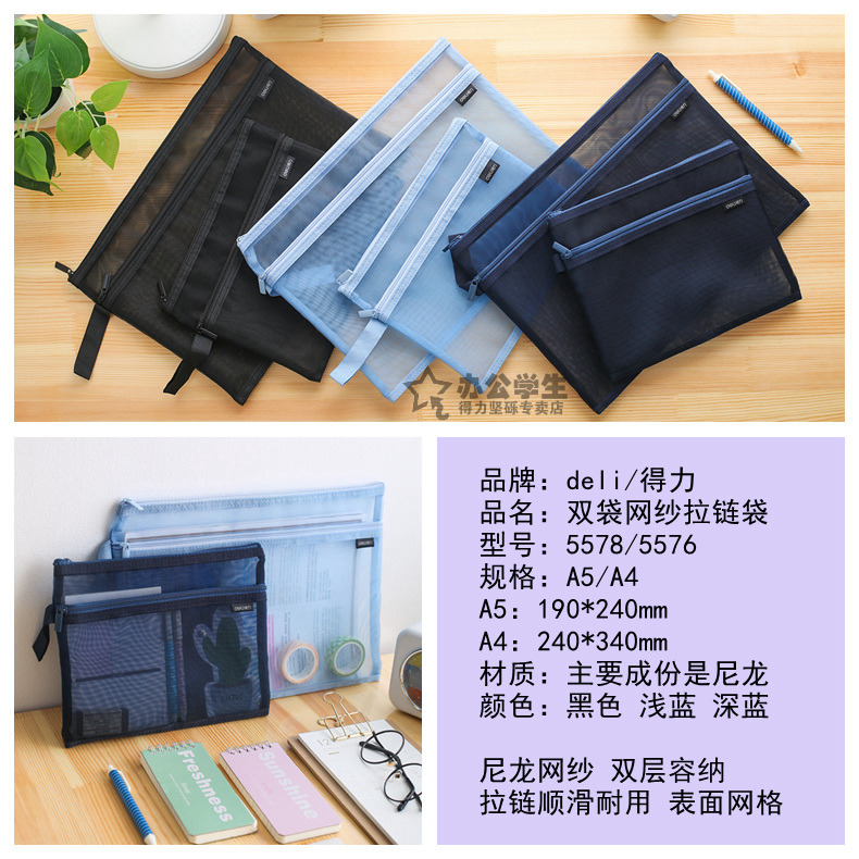 商品名称:得力 手提网纱双袋A5夹袋A4拉链袋物品文件收纳学生办公资料卷子夹5578/5576质量质感双袋双层拉链夹袋子 2个装