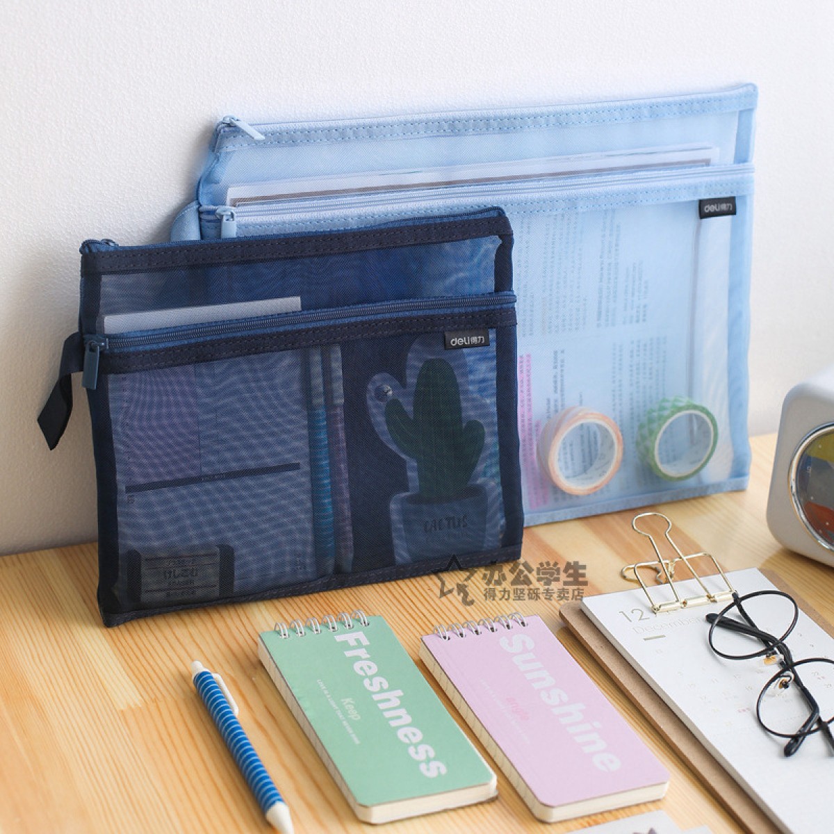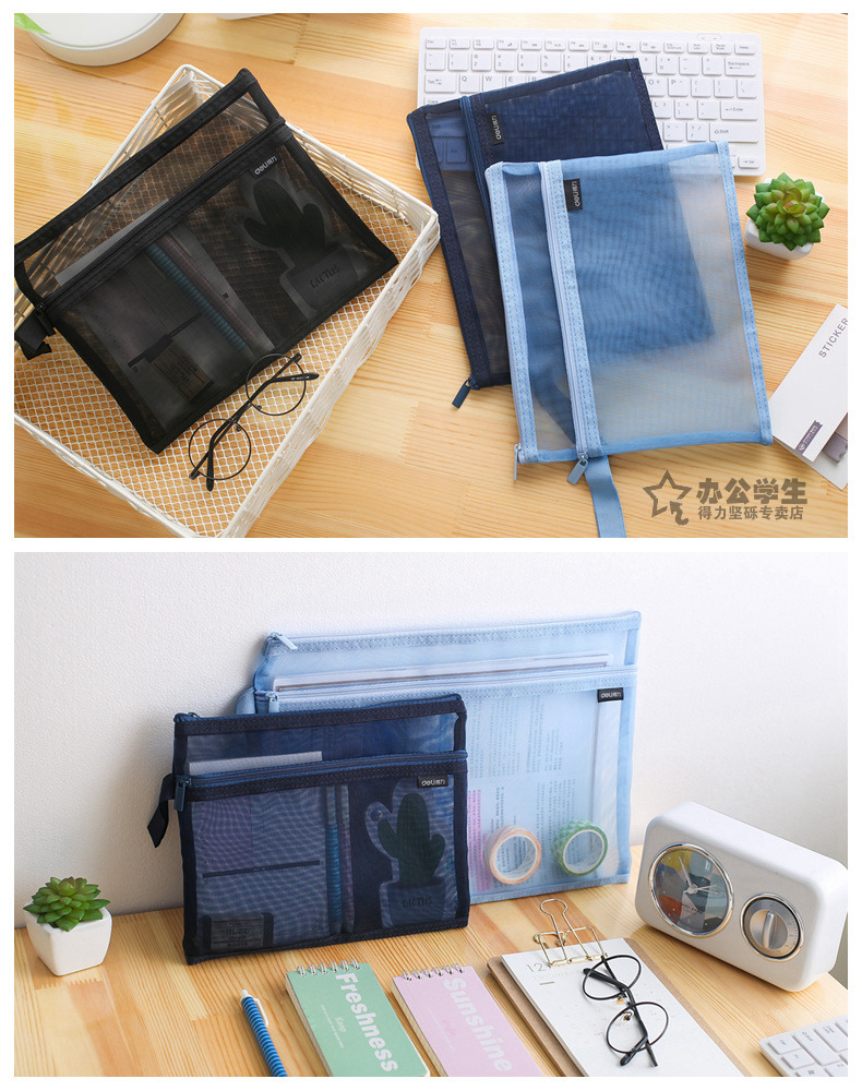 得力 手提网纱双袋A5夹袋A4拉链袋物品文件收纳学生办公资料卷子夹5578/5576质量质感双袋双层拉链夹袋子 2个装