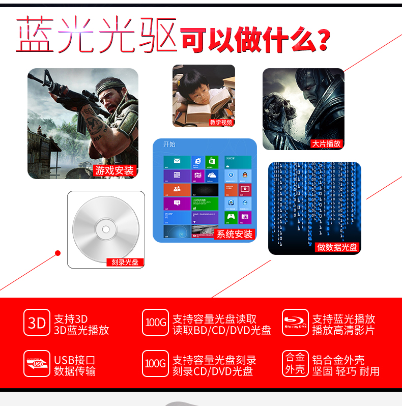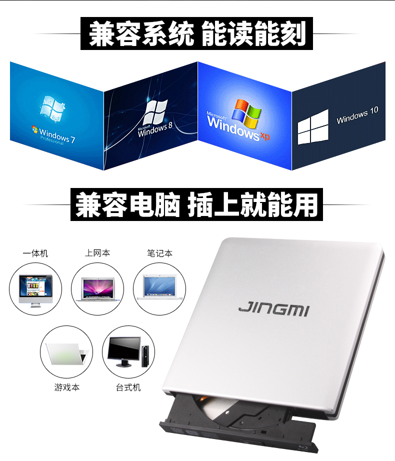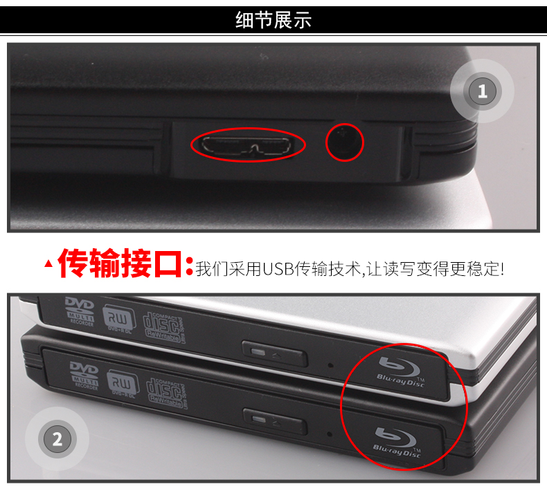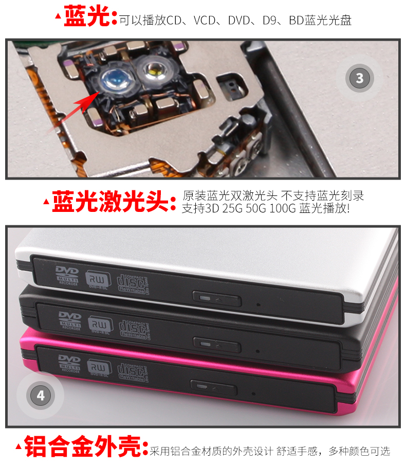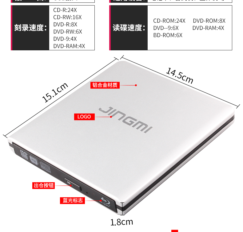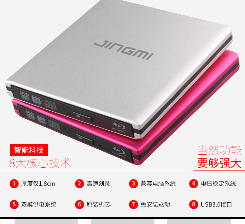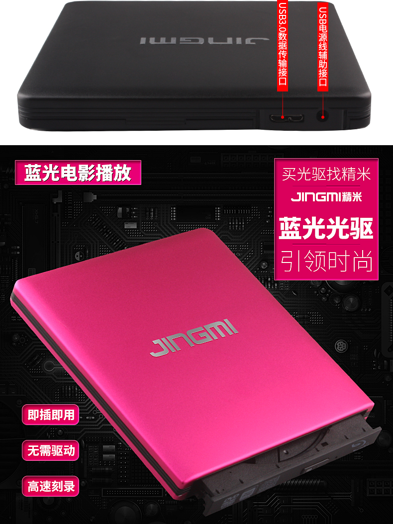商品名称:精米 外置蓝光光驱铝合金USB3.0外接移动DVD刻录机支持台式笔记本
