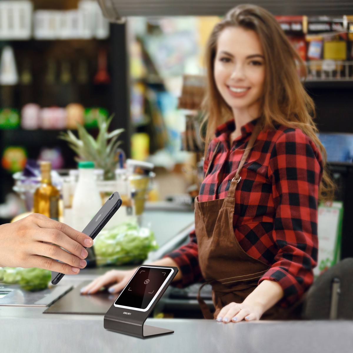 商品名称:得力 二维码扫描器扫码器刷卡机花呗平台付款器