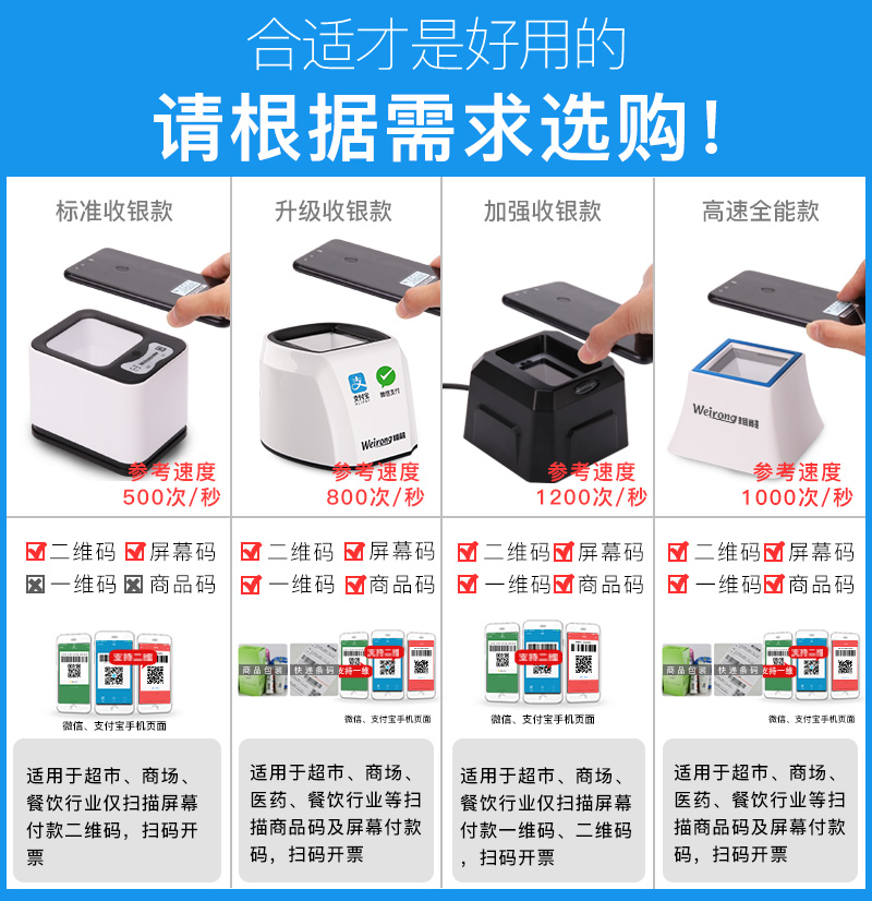 商品名称:维融 二维码扫描器扫码器刷卡机花呗平台付款器