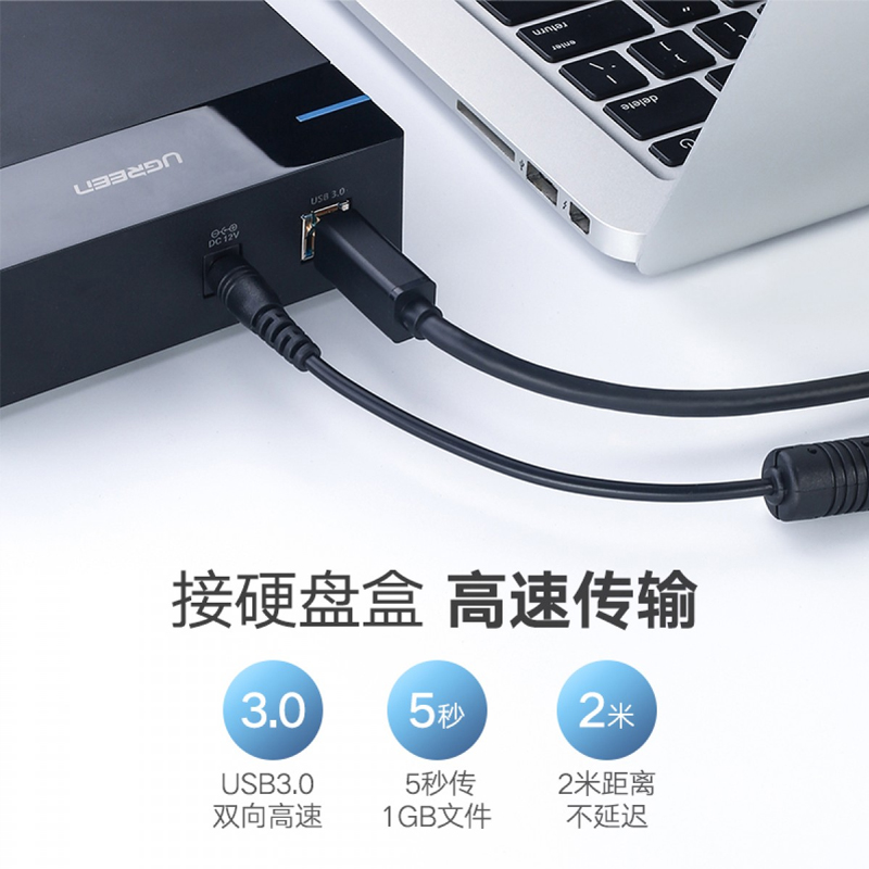 商品名称:绿联 USB3.0打印机数据线A公对B公镀金方口硬盘盒数据线连接线2米 US210