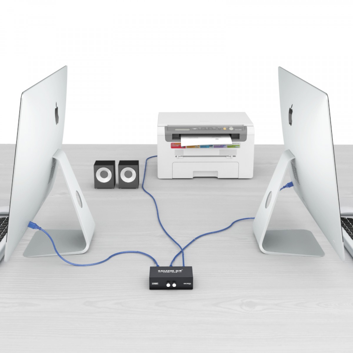 ☆山泽 SAMZHE USB打印机共享器 2进1出2口USB手动切换器 多台电 TECLAST 脑共用打印机 二进一出 免驱BL-202W