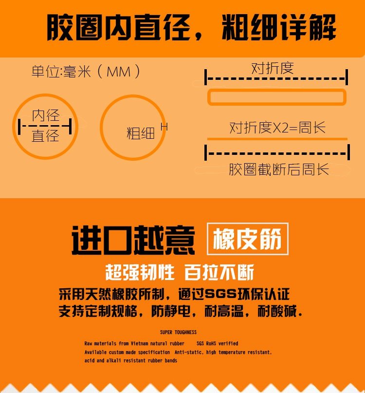 商品名称:国产 越南进口原装高弹力胶圈橡皮筋牛皮筋黄色工业办公用皮筋