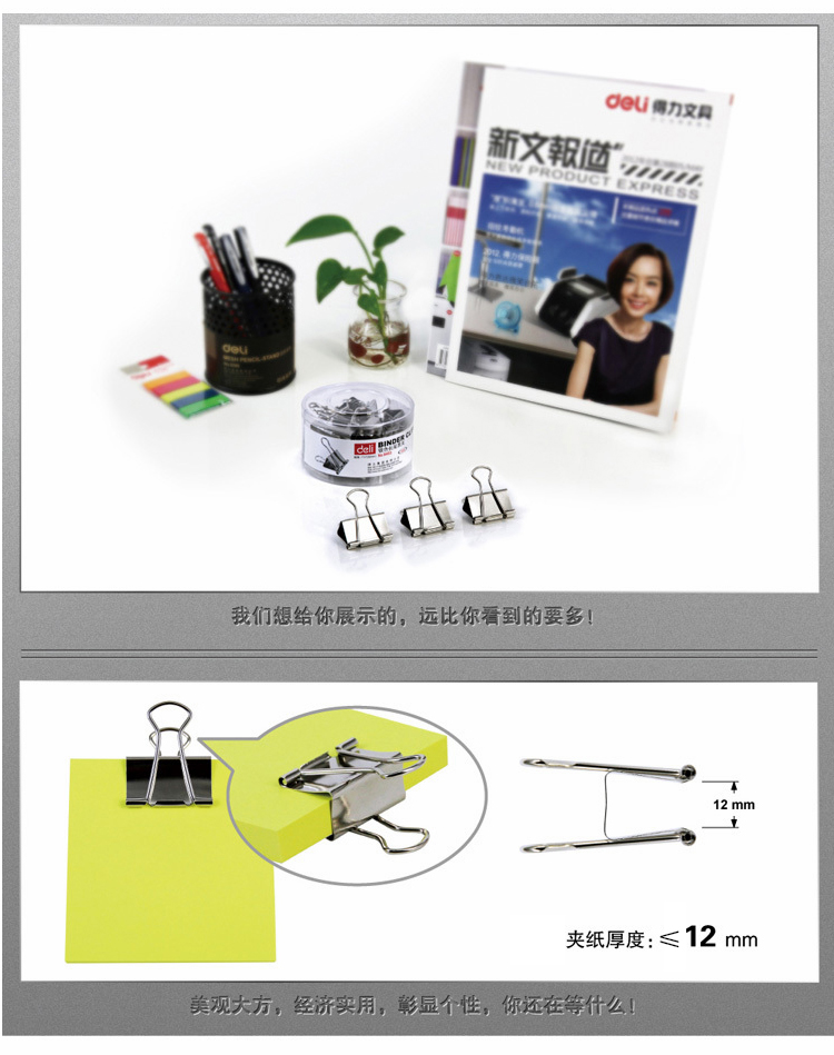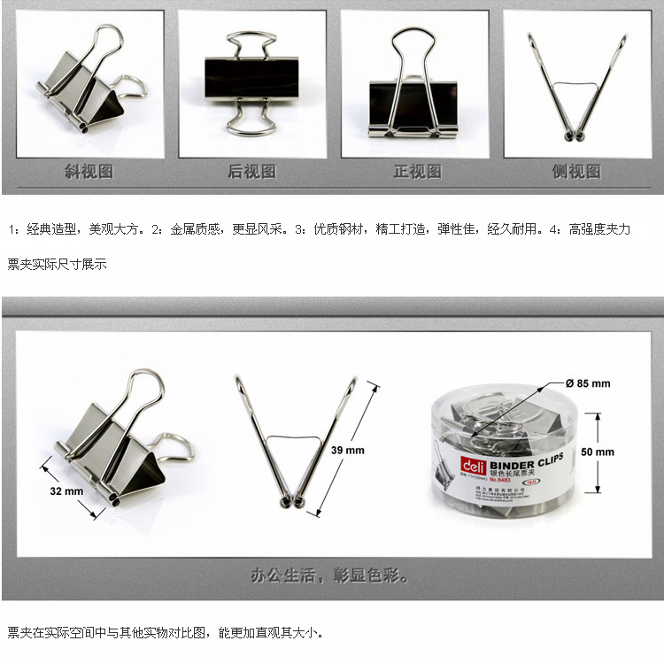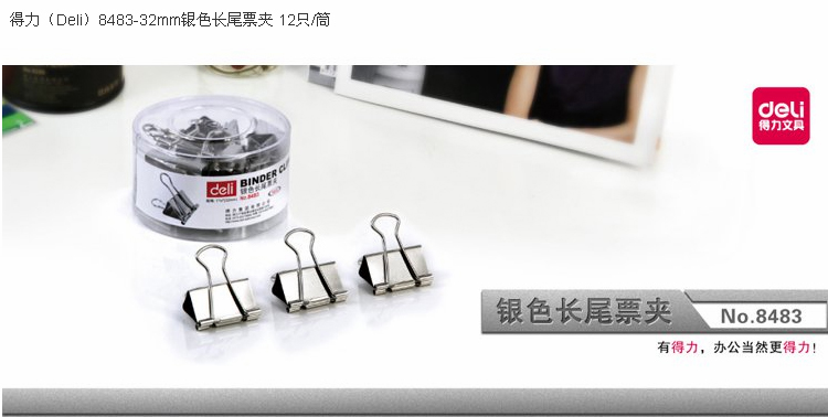 商品名称:得力 32mm 银色长尾票夹子 金属票夹 画夹 强力票夹 办公用品