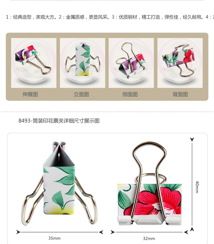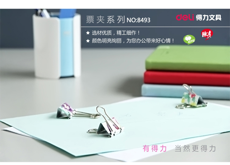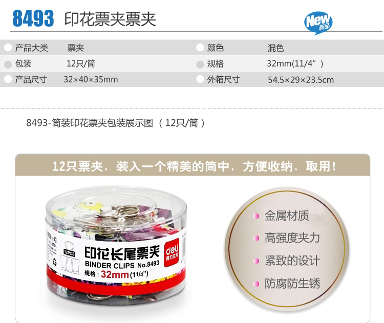 商品名称:得力 32mm印花长尾票夹燕尾夹学习办公用品金属票夹子