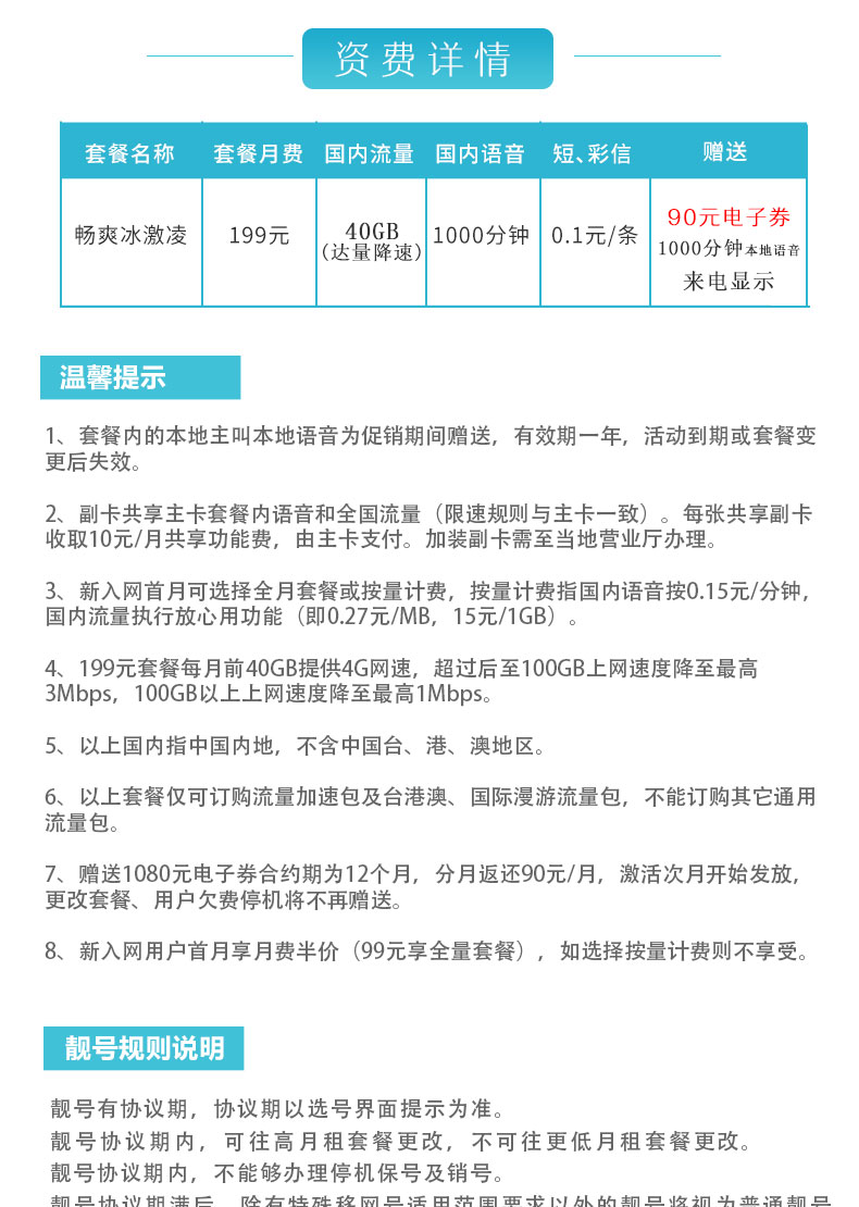 商品名称:云南联通4g大王卡电话卡靓号流量卡全国流量上网卡手机卡全国通用