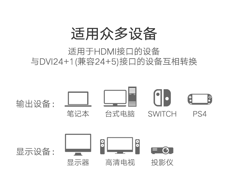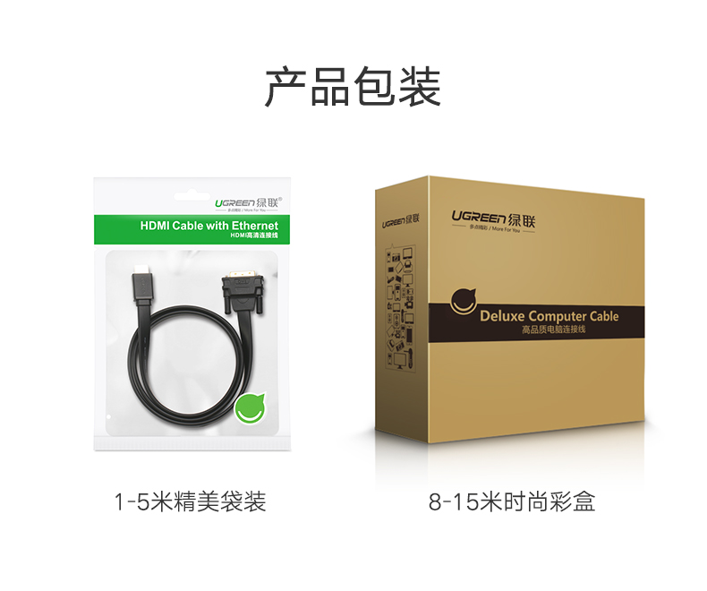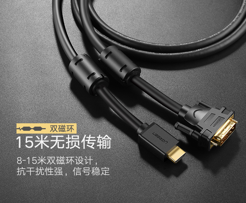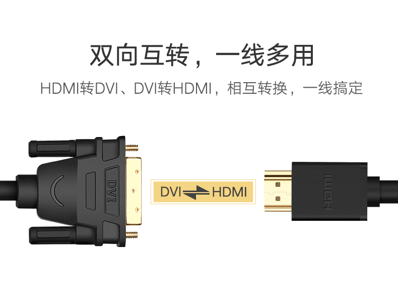 绿联 hdmi转dvi线 dvi转hdmi高清线 双向互转 5/10/15米 HD106
