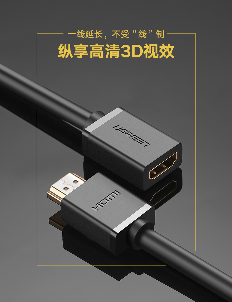 绿联 HDMI延长线公对母2.0电视显示器高清视频4K加长1/2米 hd107