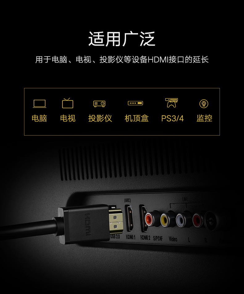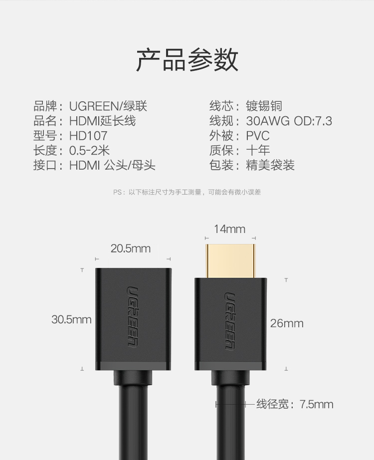商品名称:绿联 HDMI延长线公对母2.0电视显示器高清视频4K加长1/2米 hd107