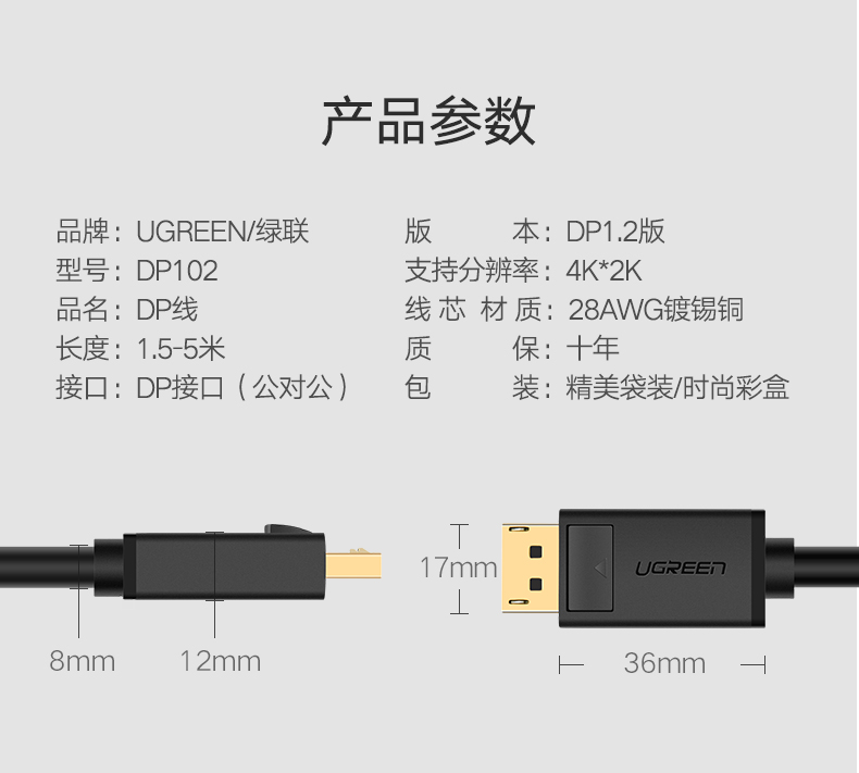 商品名称:绿联 dp线公对公4K显示器1.2高清displayport连接电脑144hz DP102