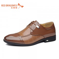 红蜻蜓 真皮男鞋春季新款商务正装职场时尚系带亮皮漆皮鞋