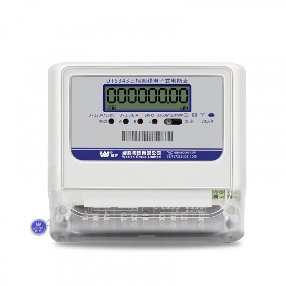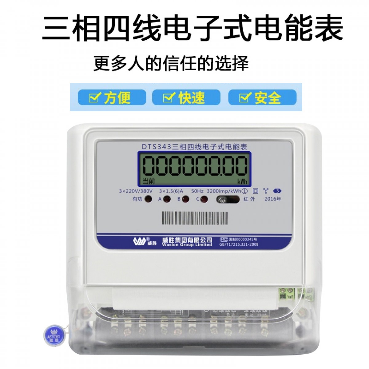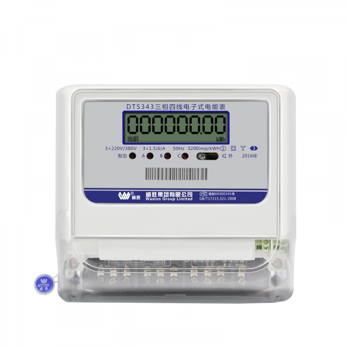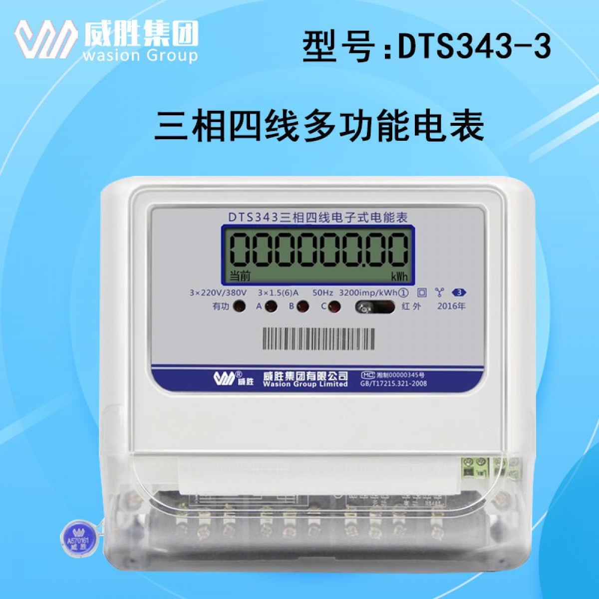 商品名称:威胜 三相四线电子式有功1级家用电能表3×220/380V液晶 DTS343-3