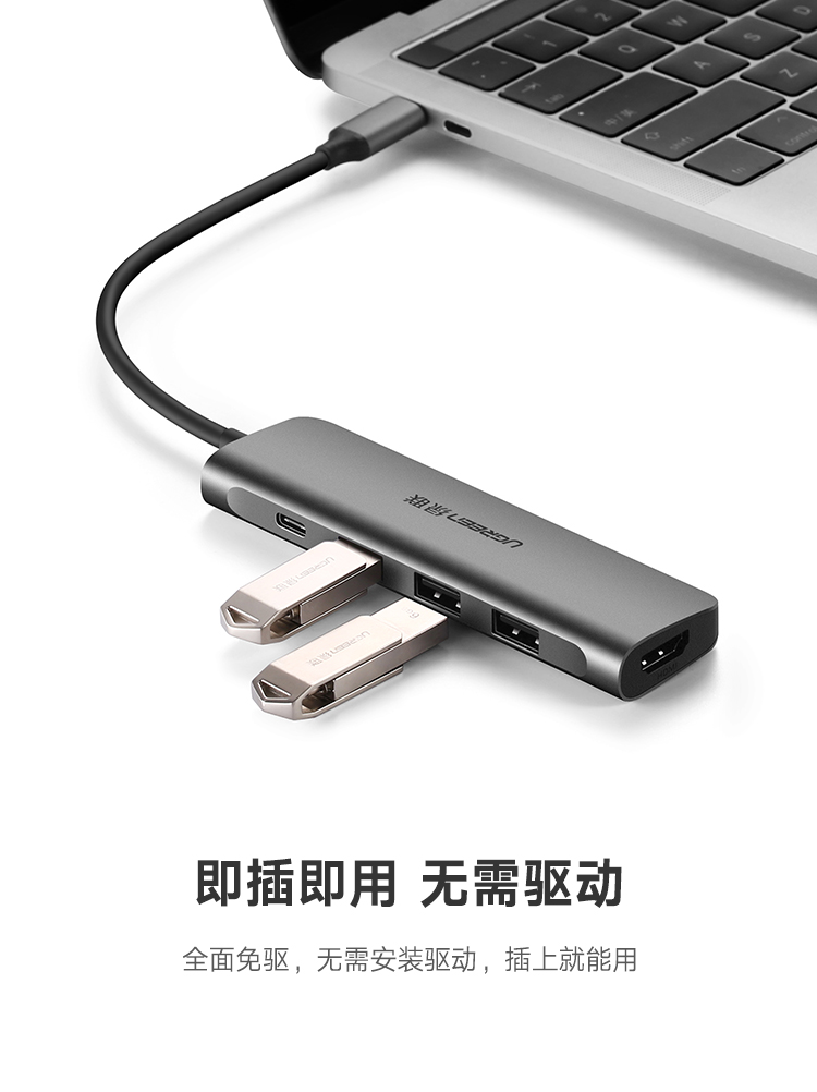 绿联CM136Type-C扩展坞USB-C转3.0HUB+VGA转换器 带PD充电50210