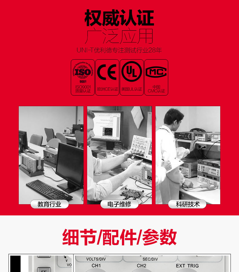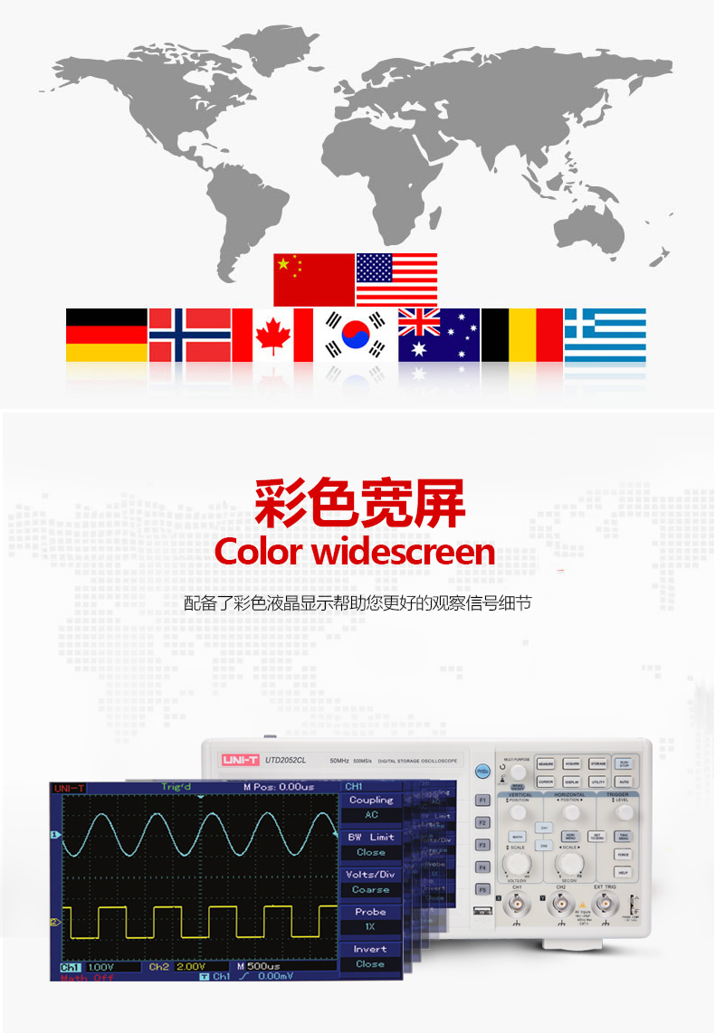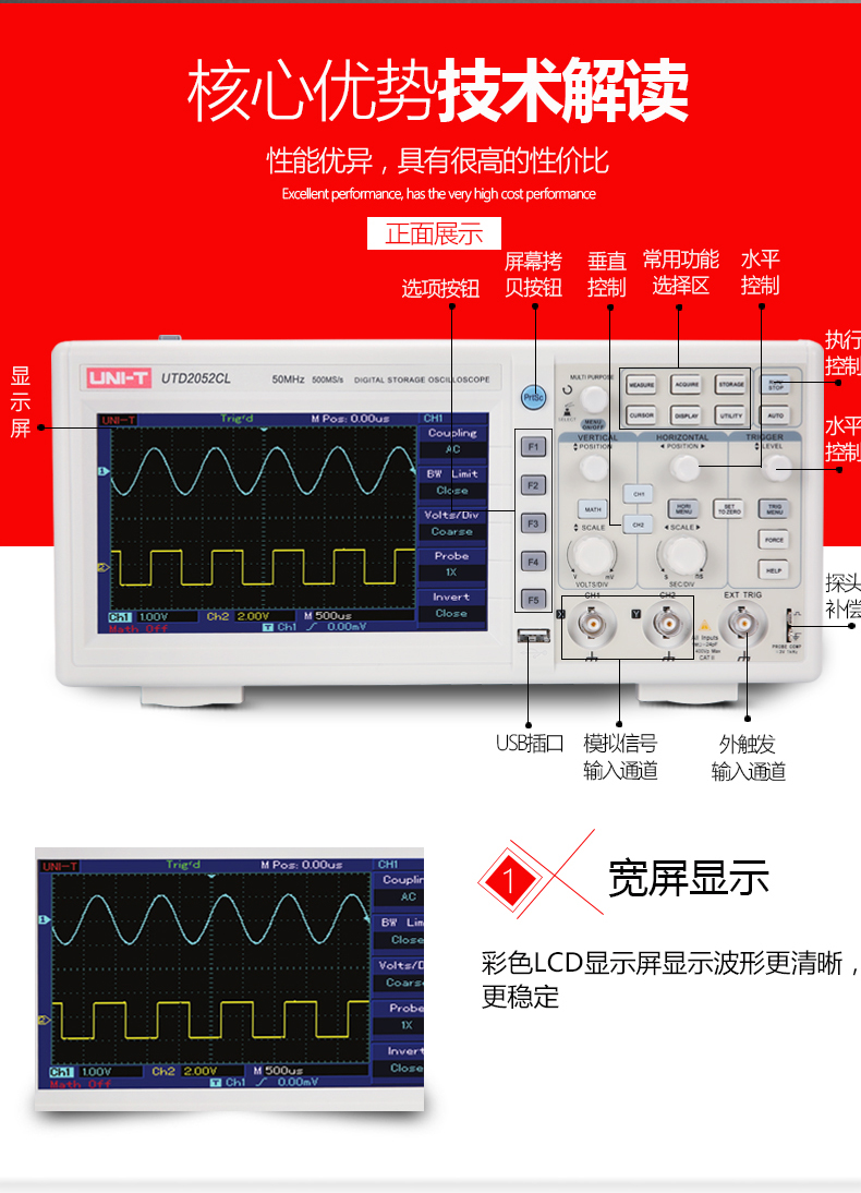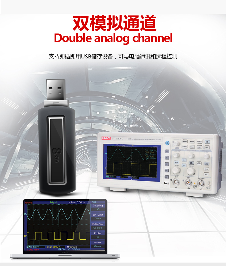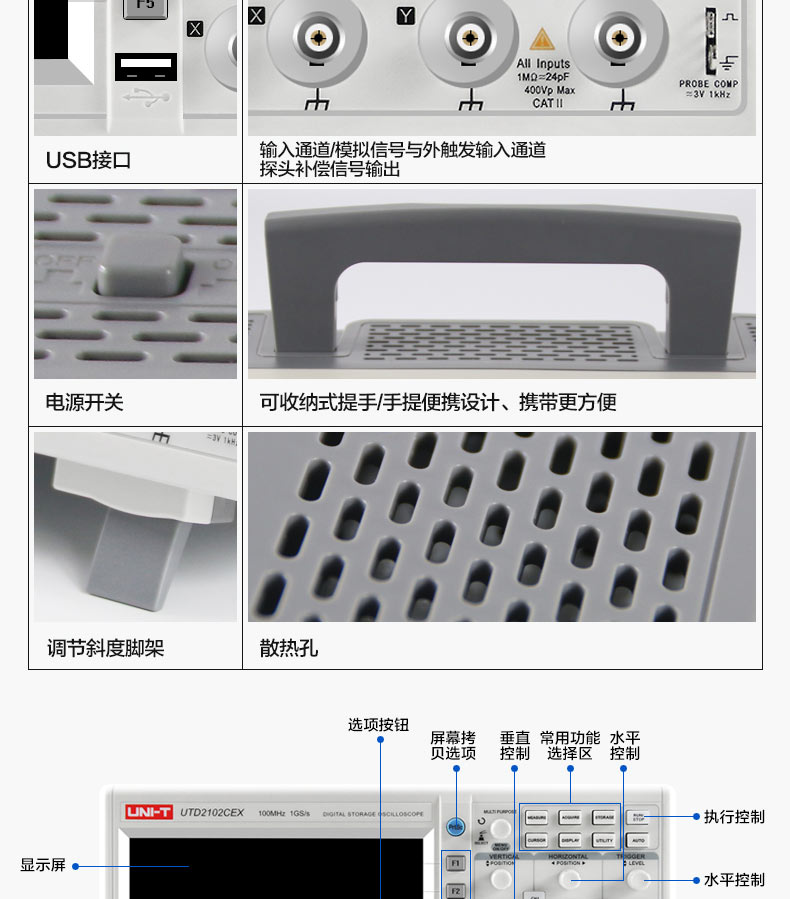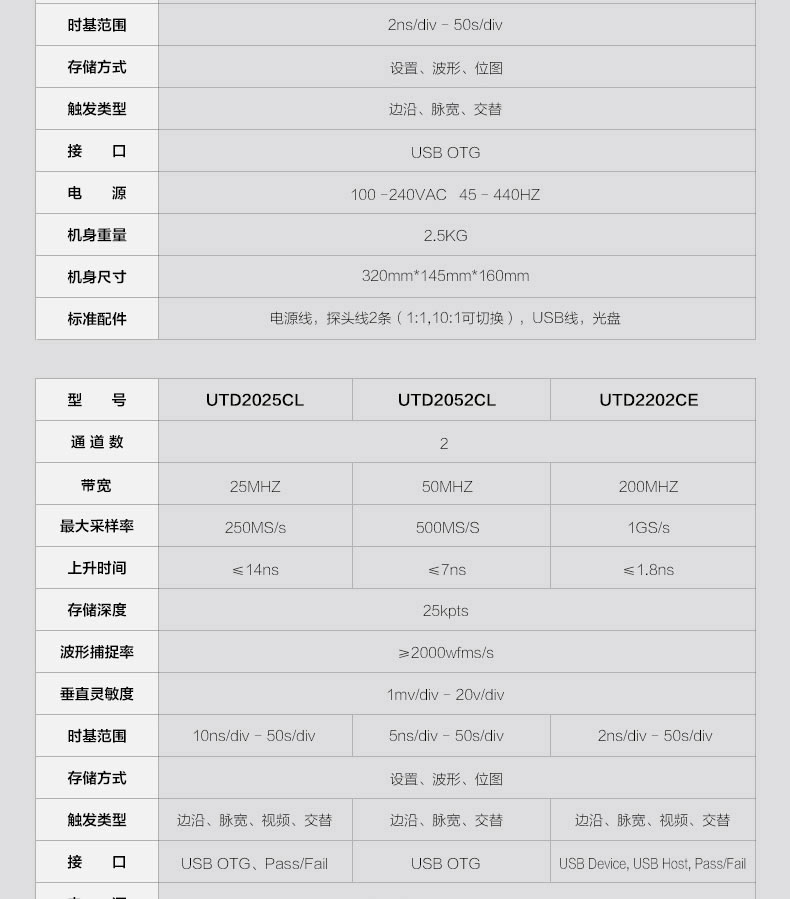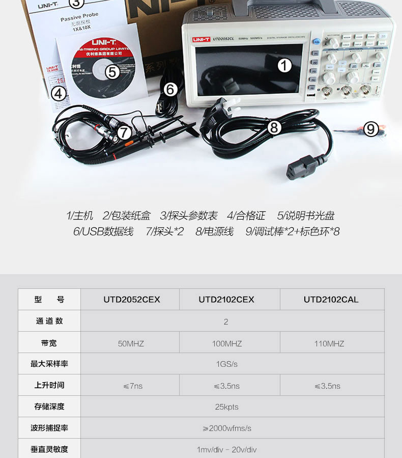 商品名称:优利德 utd2102CEX数字示波器100M带宽双通道示波器数字50M UTD2052