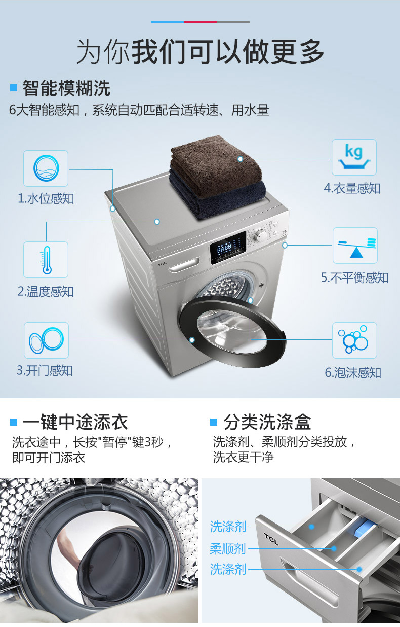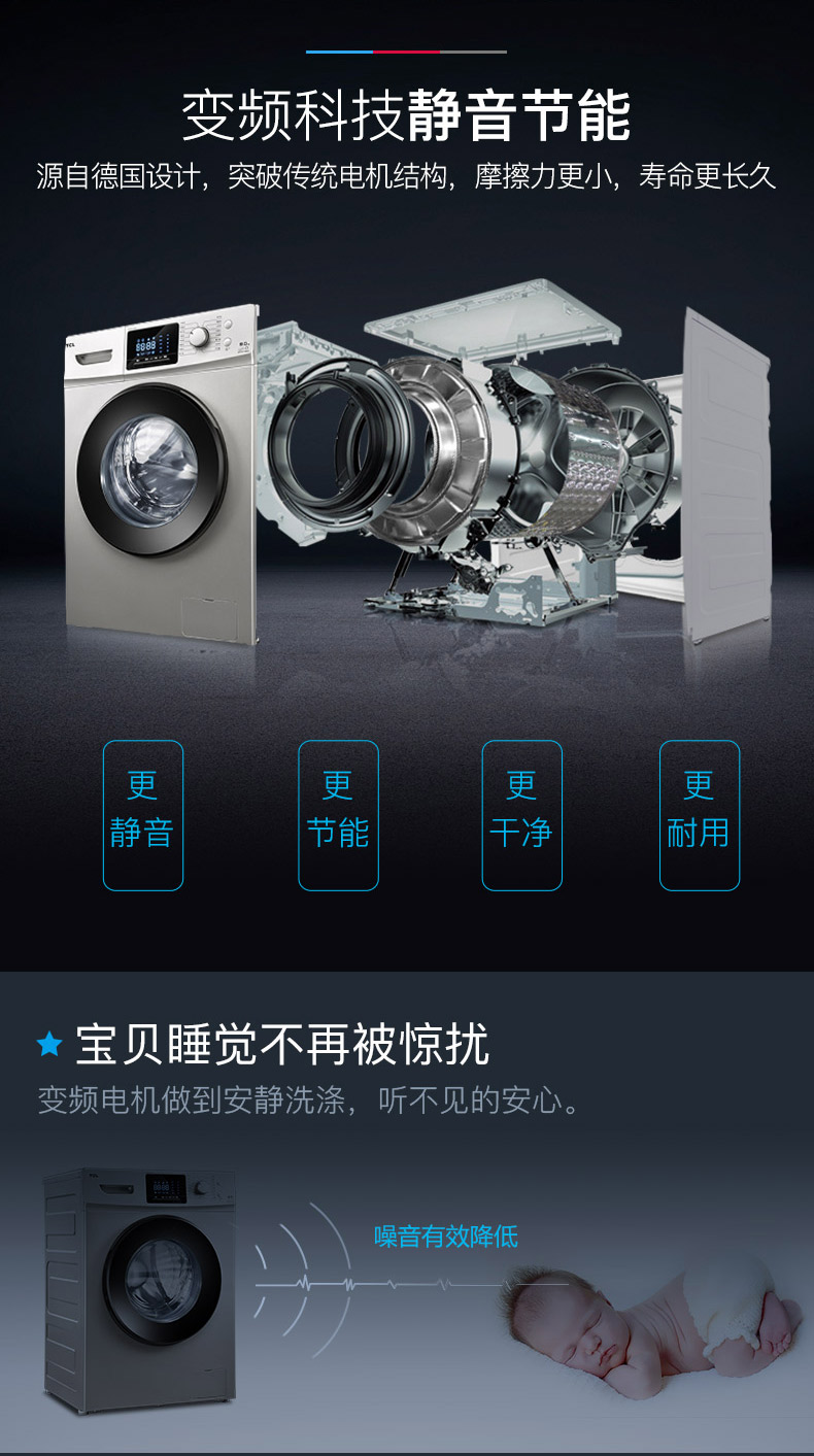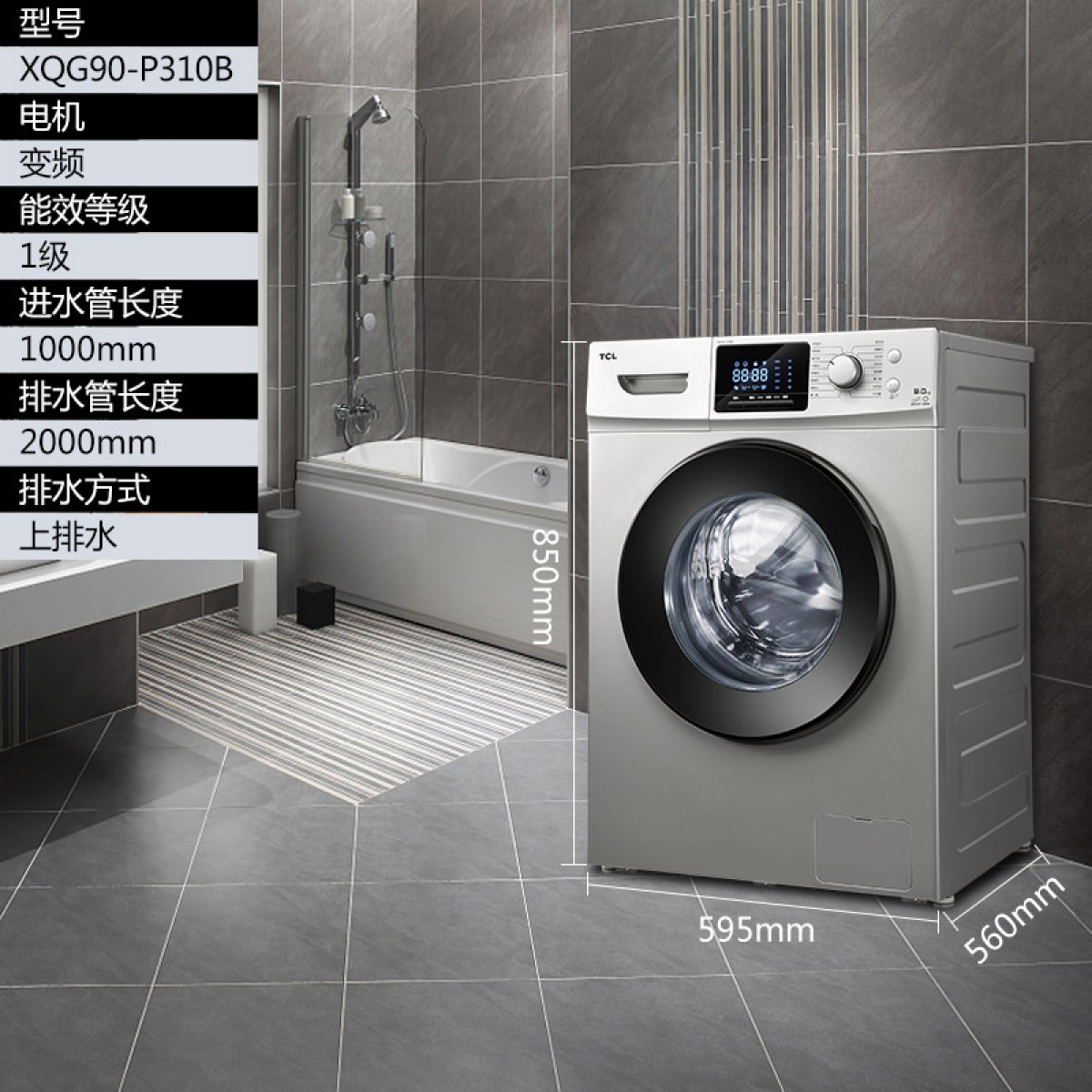 商品名称:TCL 9公斤智控变频滚筒全自动洗衣机 XQG90-P310B