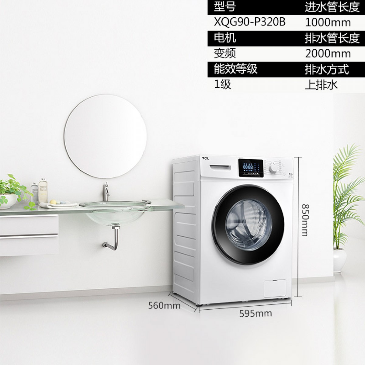商品名称:TCL 大容量9公斤全自动变频滚筒洗衣机 XQG90-P320B