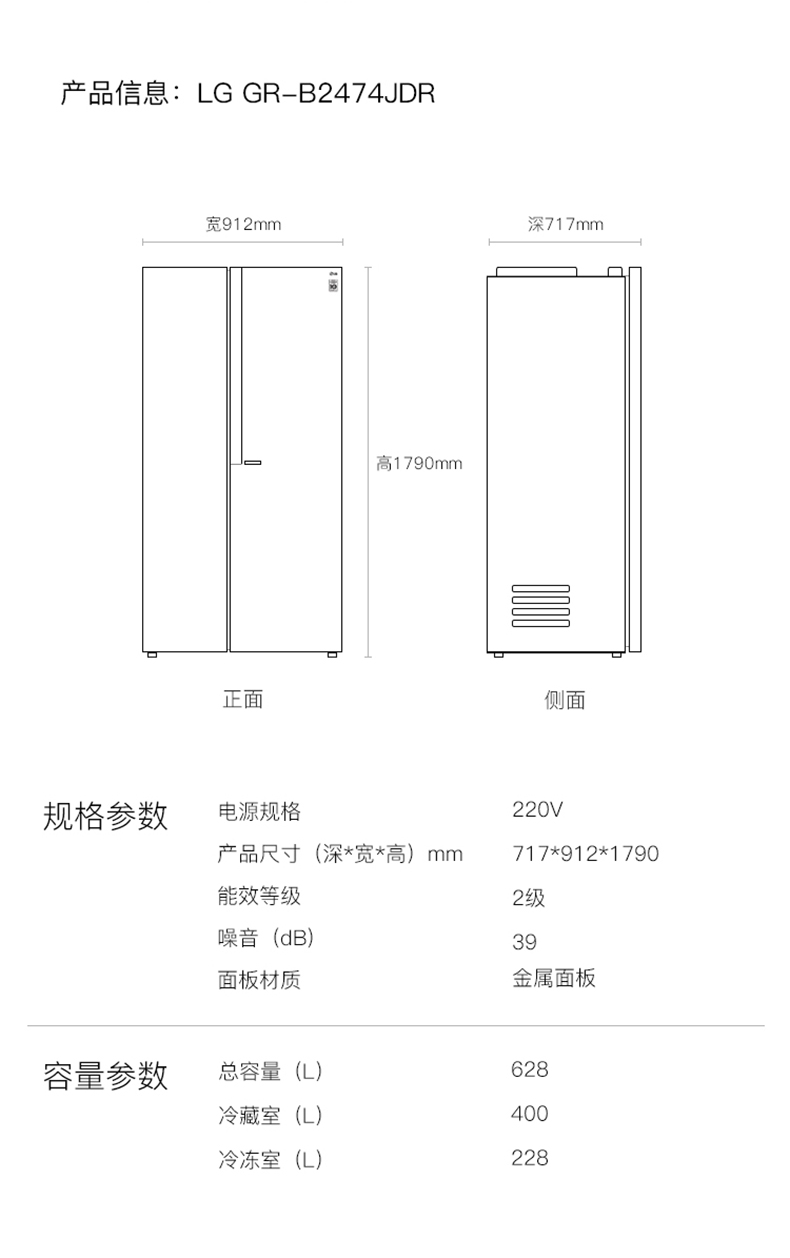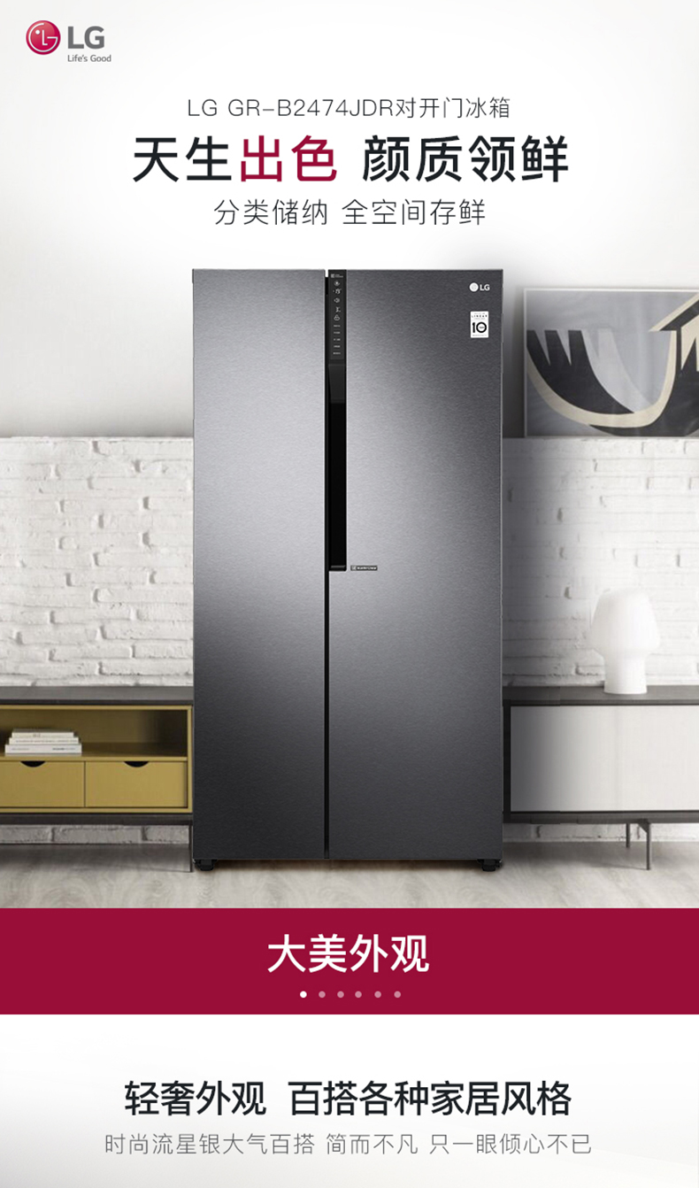 商品名称:LG 双开门大电冰箱 GR-B2474JDR