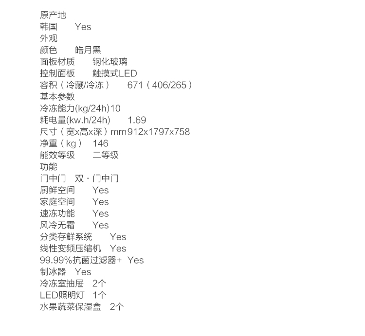 商品名称:LG 双门中门触摸冰箱 GR-D24FBGHL