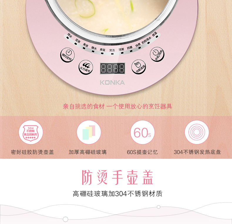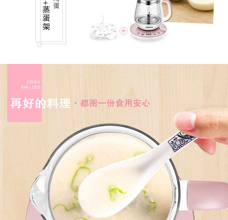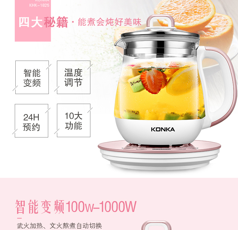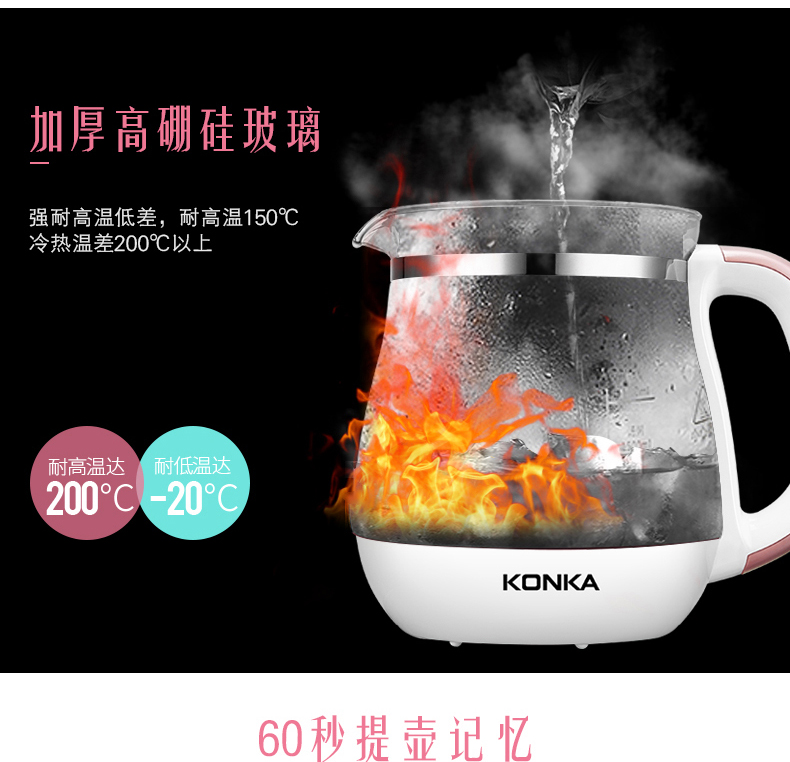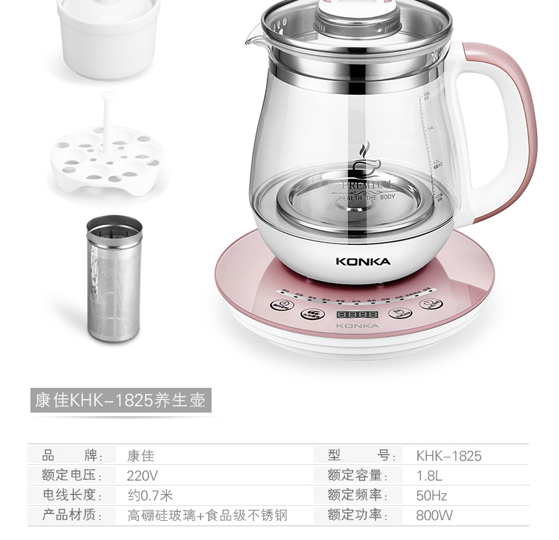 商品名称:康佳 全自动加厚玻璃多功能电热烧水壶 KHK-1825
