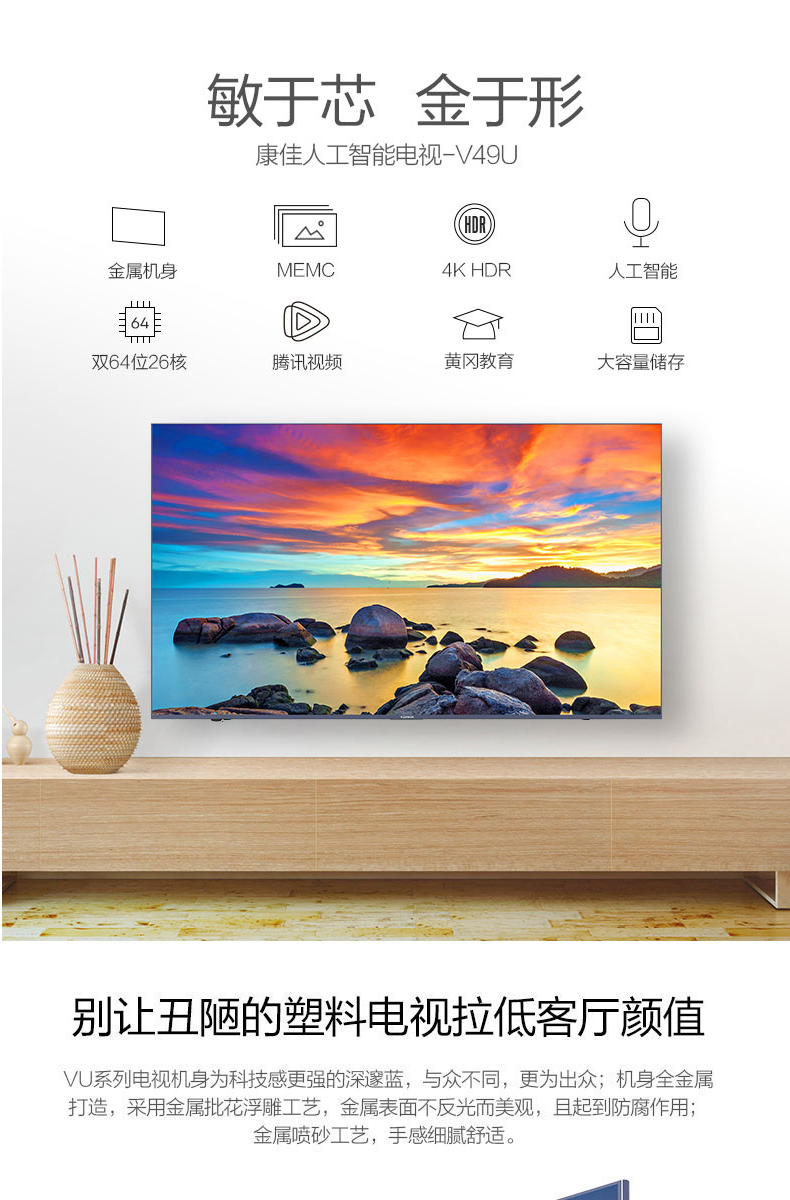 商品名称:康佳 49英寸4K高清智能网络WiFi平板液晶电视机彩电 V49U