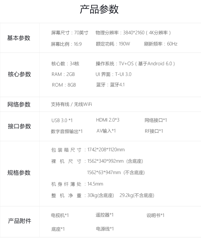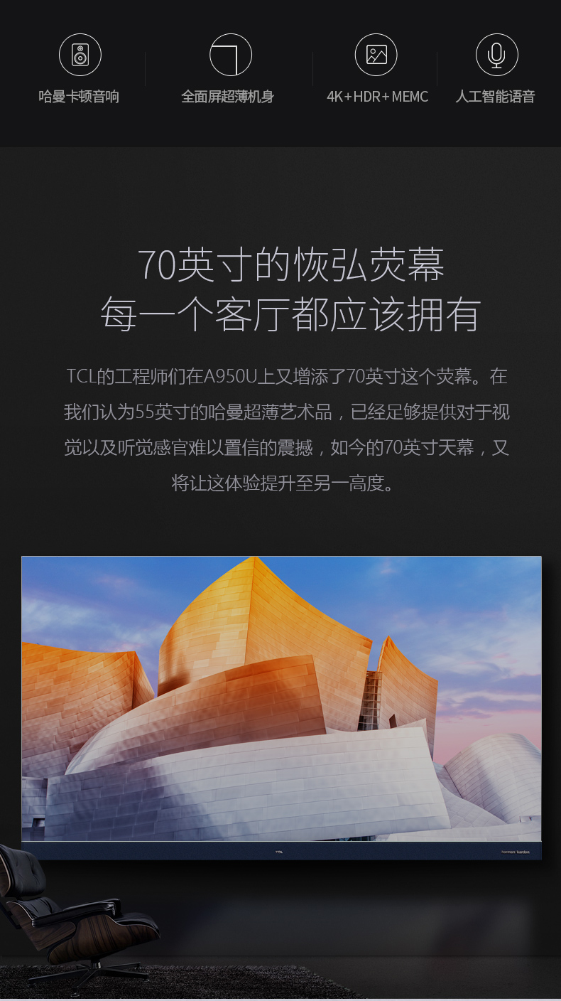 商品名称:TCL 70英寸超薄4K安卓智能LED液晶电视 70A950U