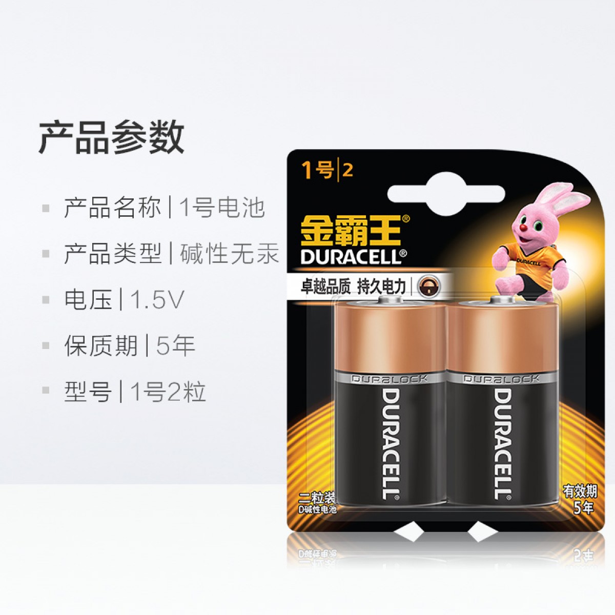 商品名称:金霸王 电池碱性大号电池2粒装 1号