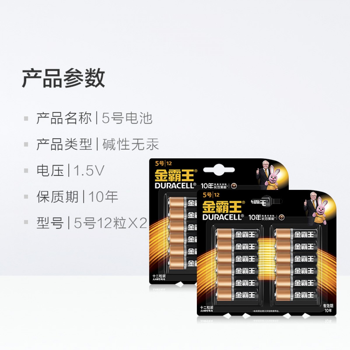 商品名称:金霸王 AA5号电池碱性五号电池 24粒装
