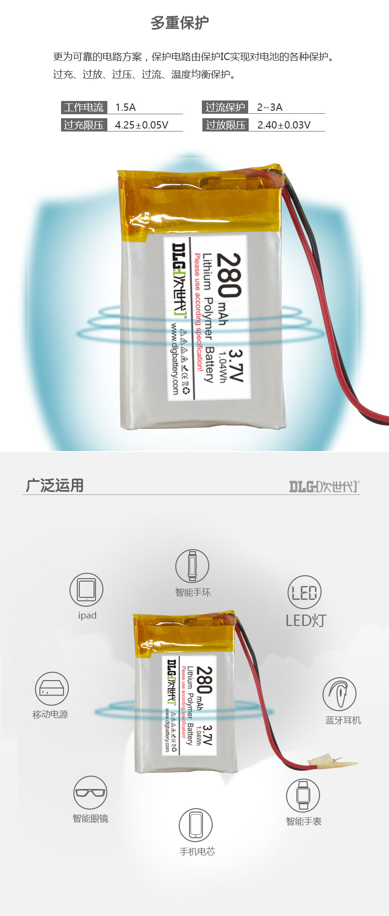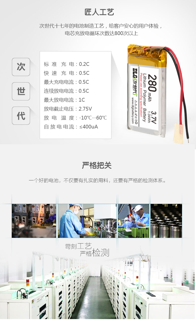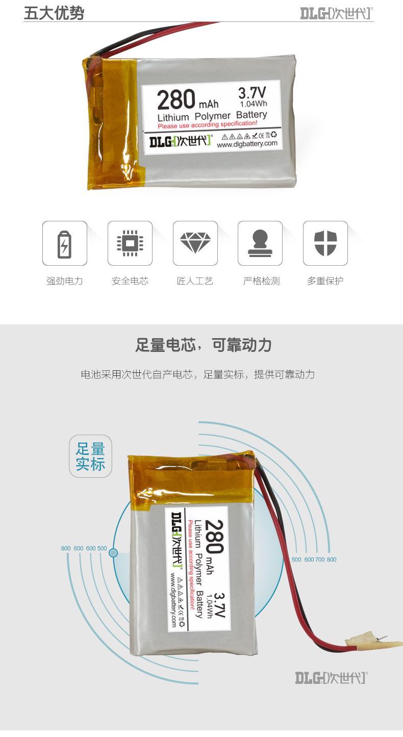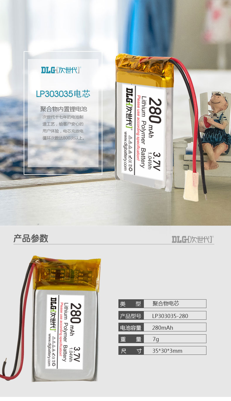 商品名称:次世代 3.7V 聚合物锂电池 LP303035-280mAh