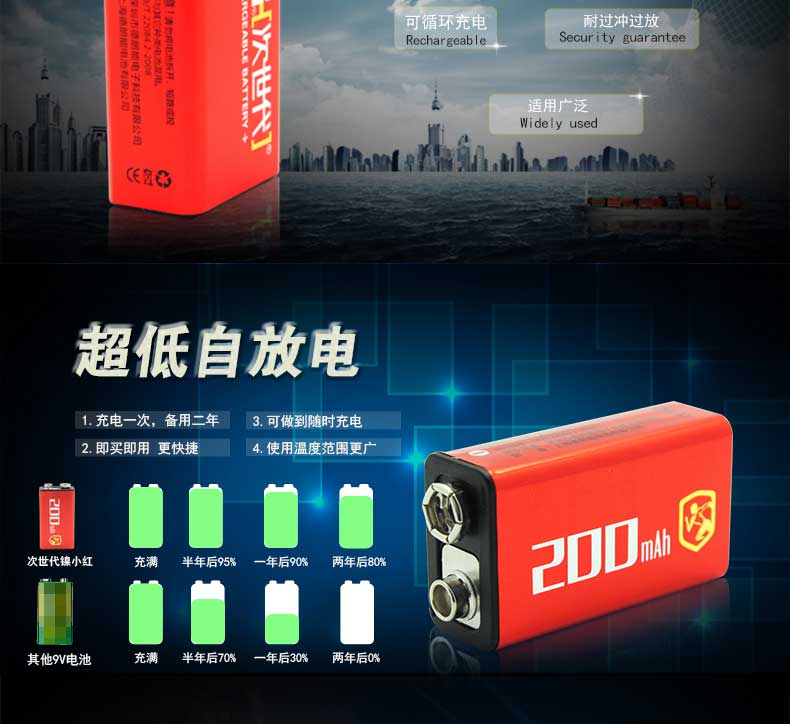 商品名称:次世代 镍氢低自放电9v充电电池 CH5020H7C